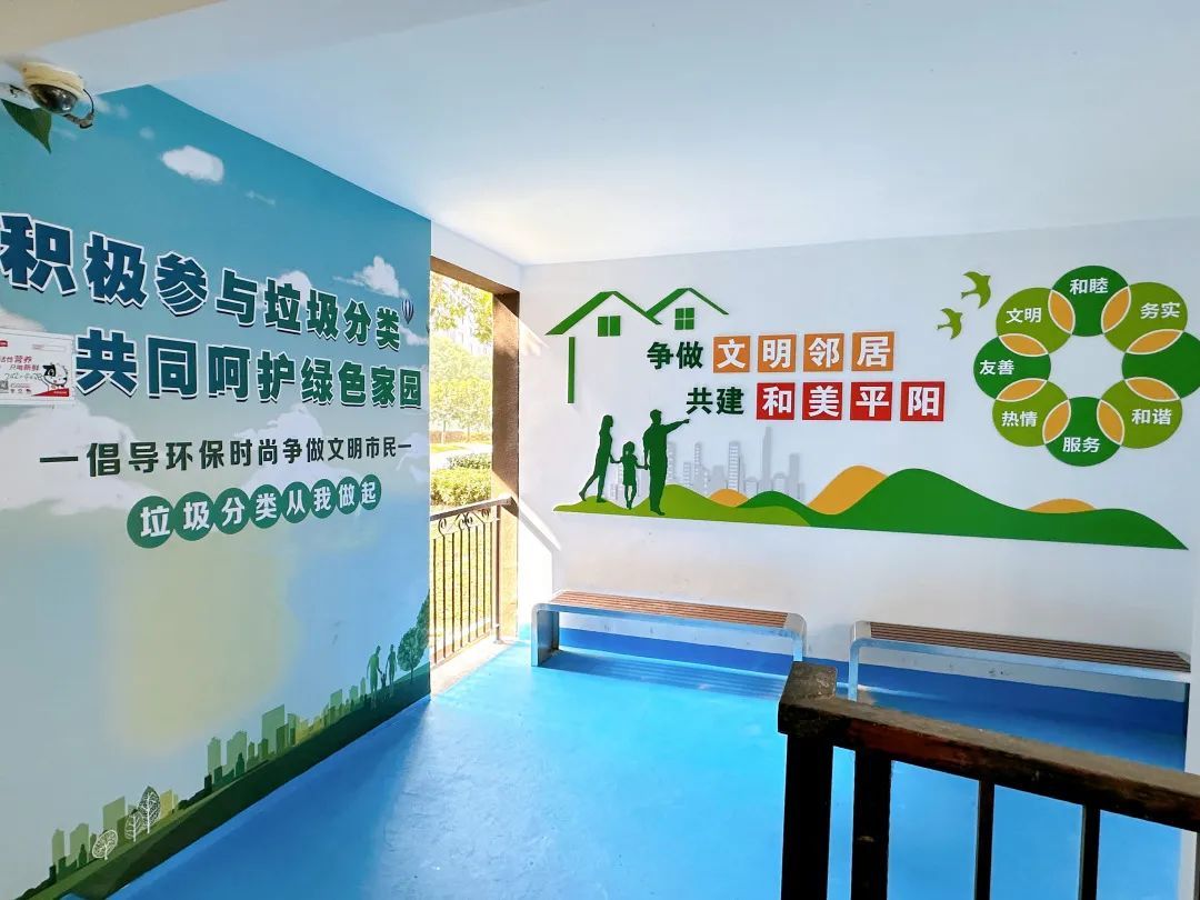架空层是居民每天的必经之路,为发挥好“楼道文化”引导人、熏陶人、凝聚人心的作用,平阳居民区充分利用架空层墙面,打造社区精神文明宣传重要阵地。