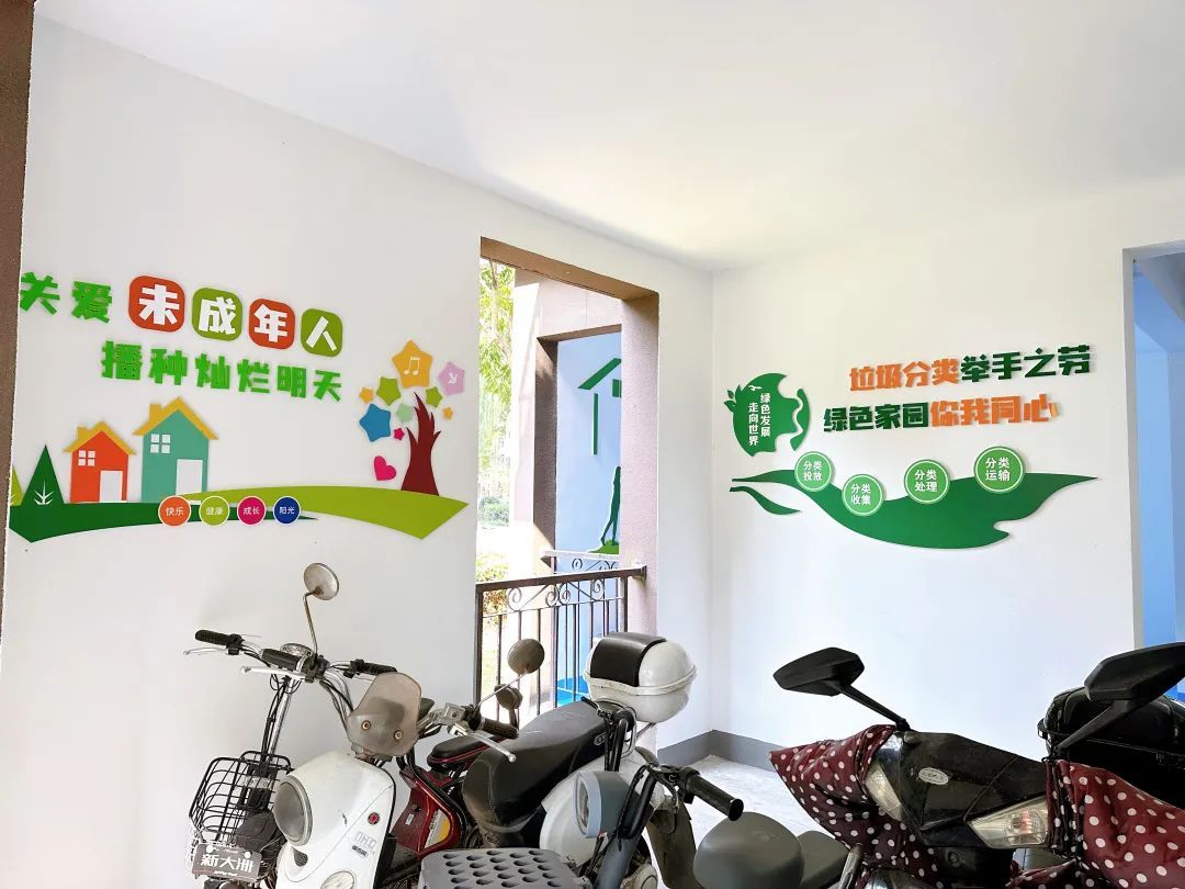 目前,小区在11个楼道打造了各具特色、各式主题的楼道墙绘,包括“红十字”“垃圾分类”“消防安全”“防诈反诈”等主题,通过这一小小空间,引导居民崇德向善,弘扬文明新风。与此同时,架空层也成为了文化纽带,增强了居民邻里间的互动交流,营造了更加和谐融洽的社区氛围。如今,架空层不仅仅是居民进出家门的“过道”,还成为了邻里之间的融情“通道”。