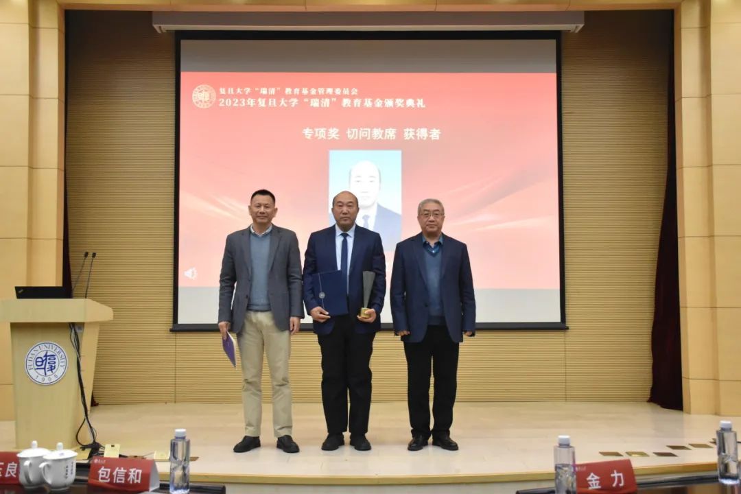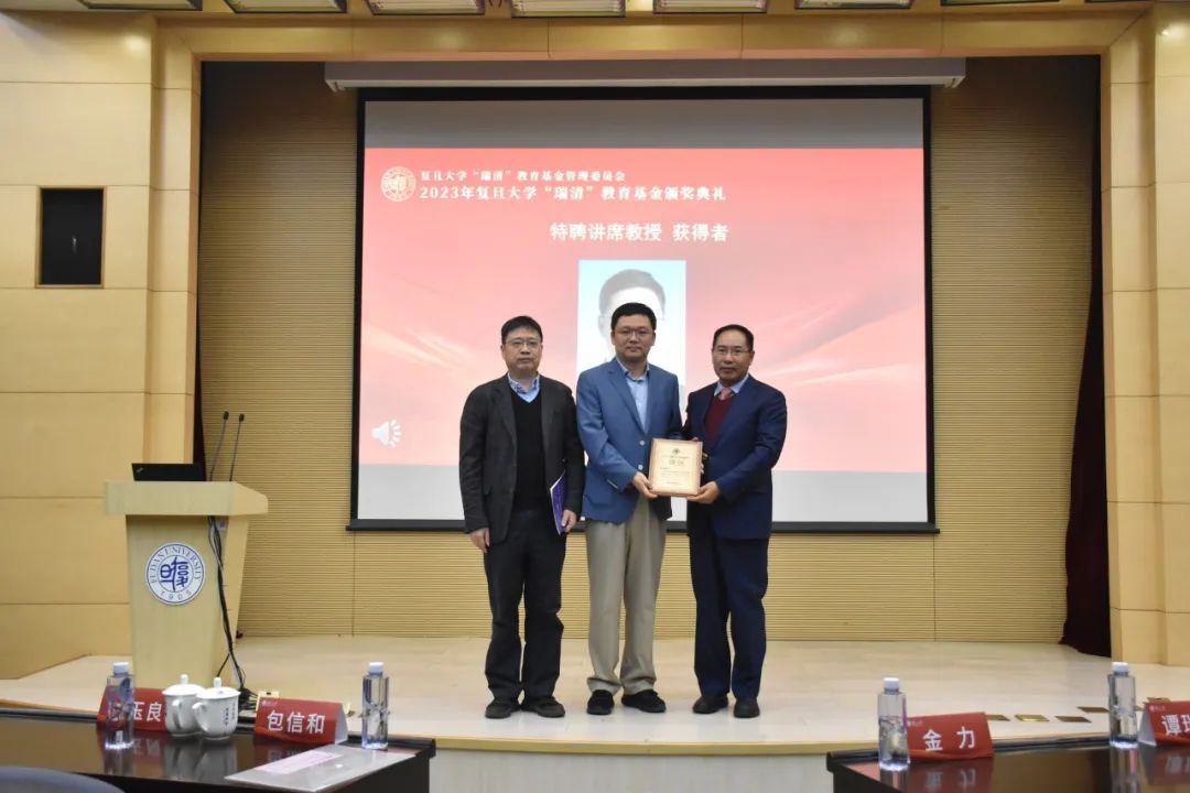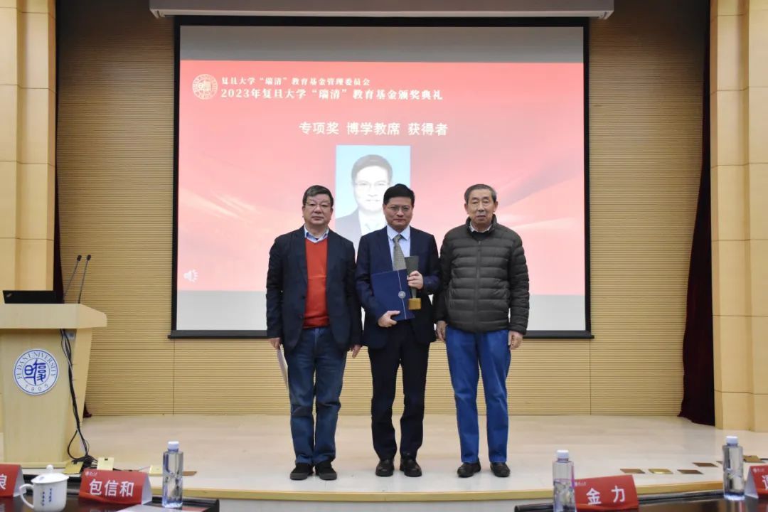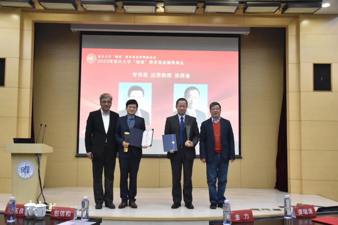 复旦大学“瑞清”教育基金,是复旦化学系1984级校友谭瑞清于2021年捐资设立的人才队伍建设专项基金,目前设有综合奖、专项奖、新生奖和特聘讲席教授奖,用于支持化学与材料学院科学研究、人才培养和事业发展。“感恩母校的培养,复旦是我的精神家园,复旦的荣光也是我的光荣”,谭瑞清在现场说。