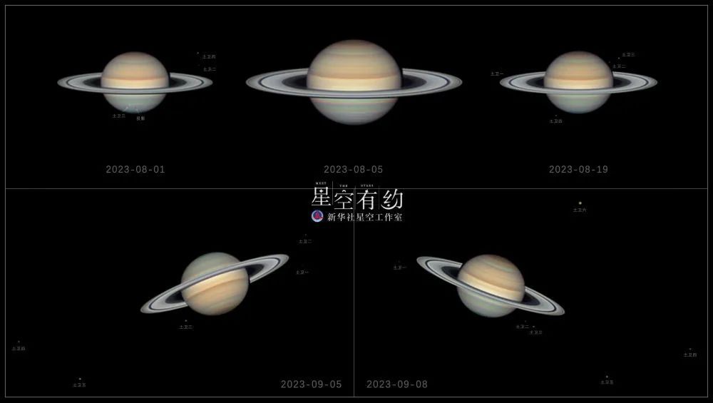 江苏星空摄影爱好者陈苏辉2023年8月和9月在江苏南通拍摄到的土星特写(拼版照片)。