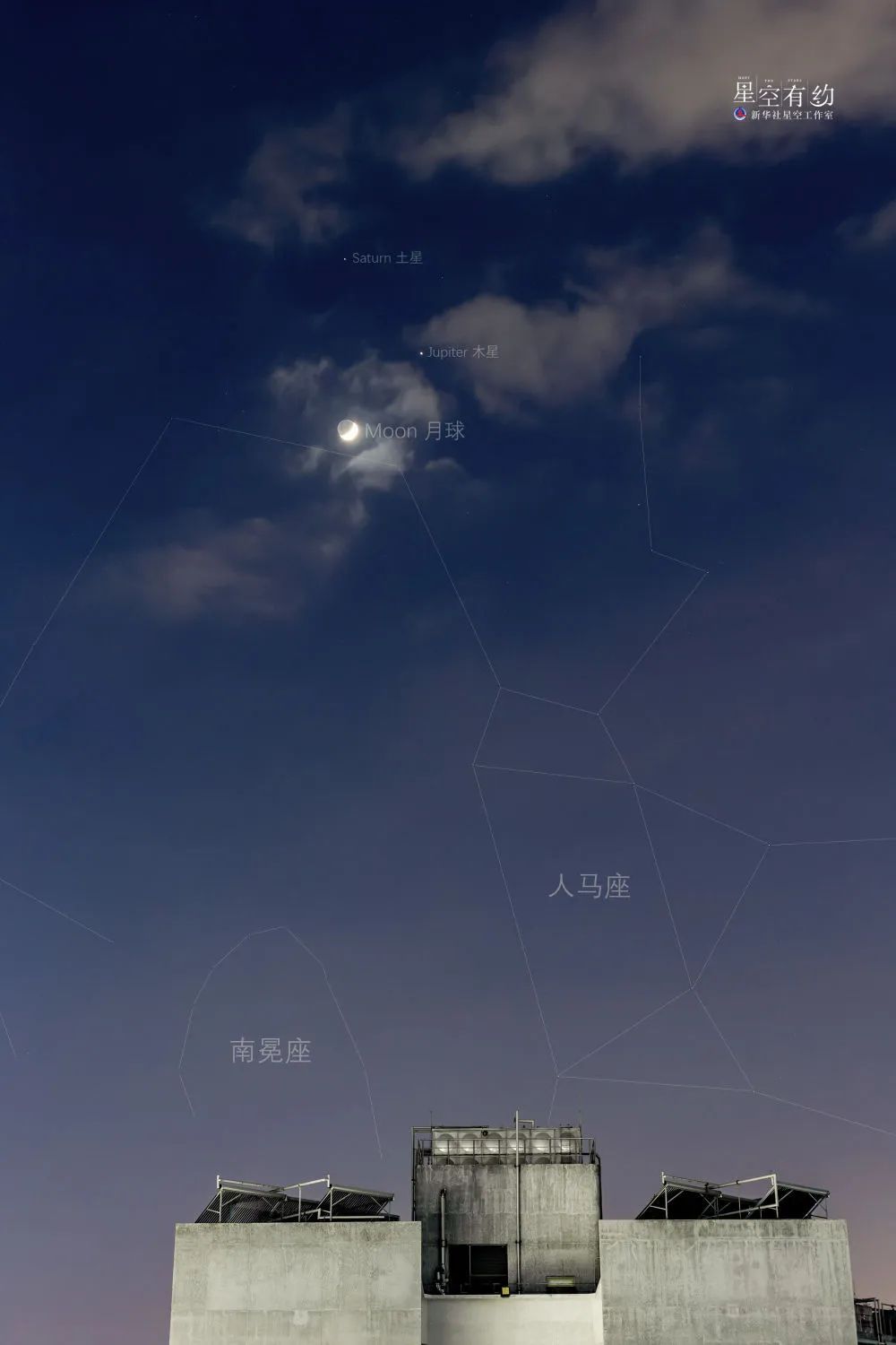 20日天黑后,一轮农历初八的上弦月会高挂在南方天空,散发出皎皎的清辉。如果天气晴好,感兴趣的公众用肉眼会看到月亮上方不远处有一个明亮的小光点,这个小光点就是土星。