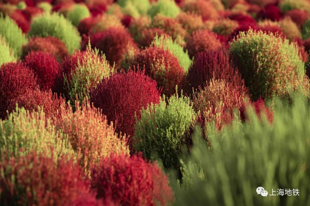 辰山植物园的地肤也红了,若身处地肤海中,可以看到身边的地肤颜色从浅红到锈红,远远望去,大大小小的地肤错落有致、色彩斑斓、令人心动。