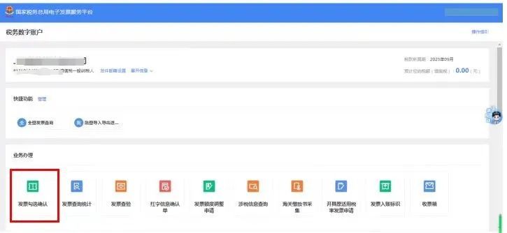 第三步:在税务数字账户首页点击“发票勾选确认”。