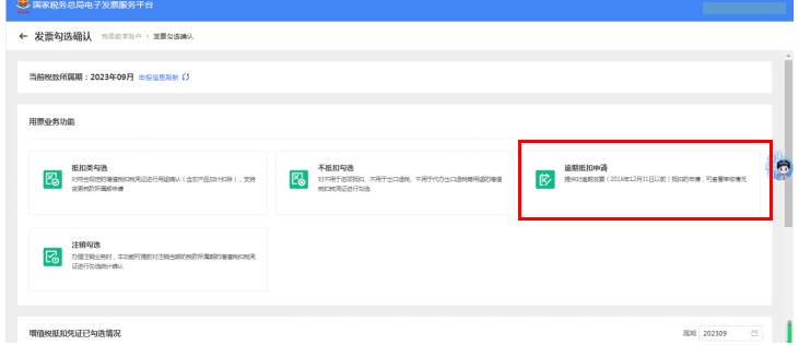 路径:国家税务总局上海市电子税务局-【我要办税】-【税务数字账户】-【发票勾选确认】-【逾期抵扣申请】