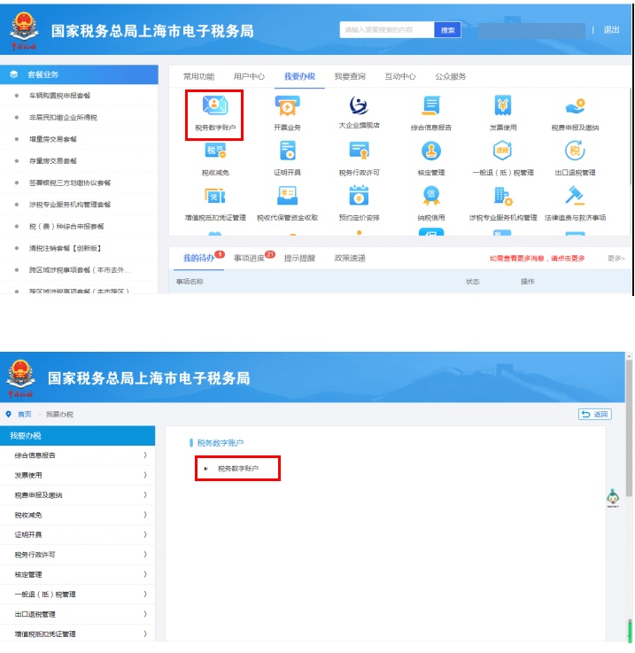 第二步:进入电子税务局首页,点击“我要办税-税务数字账户”。