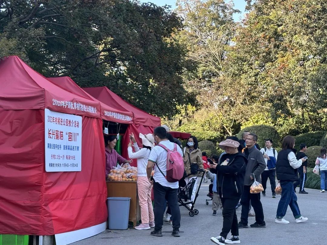 从上海植物园三号门入园往里走,迎面可以看到一顶红色的帐篷,这里就是今年生态岛柑橘在徐汇区的推介点了。在摊位前简介牌上,记者看到柑橘的售价为2.2元1斤,大家也可以选择10元一袋已打包好的柑橘,一份重约4斤6两,20只左右。“这儿的柑橘口感不错,也比外面便宜,这已经是我第二次来买了。”市民王女士告诉记者。据了解,今年上海植物园推介的柑橘均来自崇明岛柑橘种植合作社及果园。柑橘在前一天采摘、分级后,第二天一早便直接送到市区推介点里进行售卖,因此果品的新鲜度得到了很大的保障。同时,现场工作人员告诉记者,由于近期昼夜温差加大,加速了柑橘糖分积累,今年的柑橘甜度也有明显提升。“外面同种类的柑橘一般都卖2.5元1斤,我们的定价也是最划算的。”工作人员补充道。据悉,今年沪郊优质柑橘进市区活动将持续至11月24日结束,每天上午八点开始推介,售完即止。除了在家门口购买柑橘之外,市民朋友们也可以前往生态岛赏秋采橘。