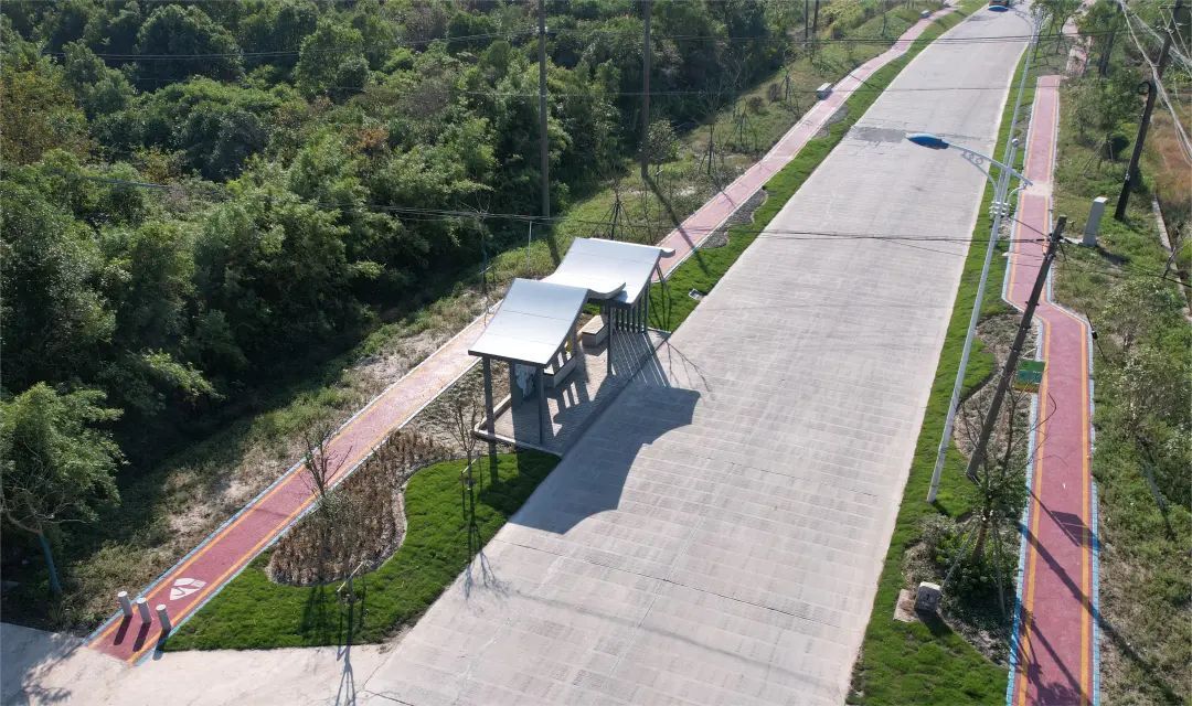 “农村道路上一般都是人车混行,存在安全隐患,现在有了绿道,我们平时出行、散步,更有安全感了。”家住附近的许老伯说。值得一提的是,永南路沿线公交站台也随绿道建设换了新颜——以前的站台只有一个顶棚,而现在的站台融入白墙黛瓦江南水乡风格,并安装了供人休憩的座椅,兼具观赏性和服务性。