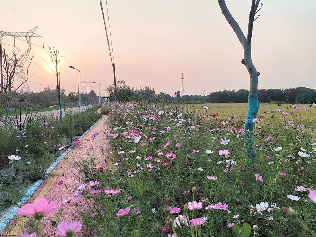 农村道路两侧原本浓密的行道树“墙”被打开,取而代之的是一条草花烂漫的绿道……浦江镇大治河南部新时代乡村振兴示范区建设又添一道风景线。