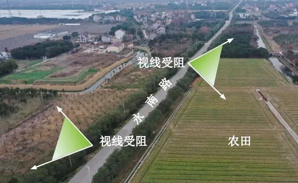 这条新建的绿道位于永南路(沿浦公路—召泰路)两侧,总长约4千米,途经浦江镇光继村、汇中村。据汇中村村民介绍,在绿道建设前,永南路两侧原本都是夹竹桃,枝叶浓密、色彩单一,走在路上,感觉两边的景色就是一成不变的——实际上,田园风光都被这堵“墙”遮蔽了。
