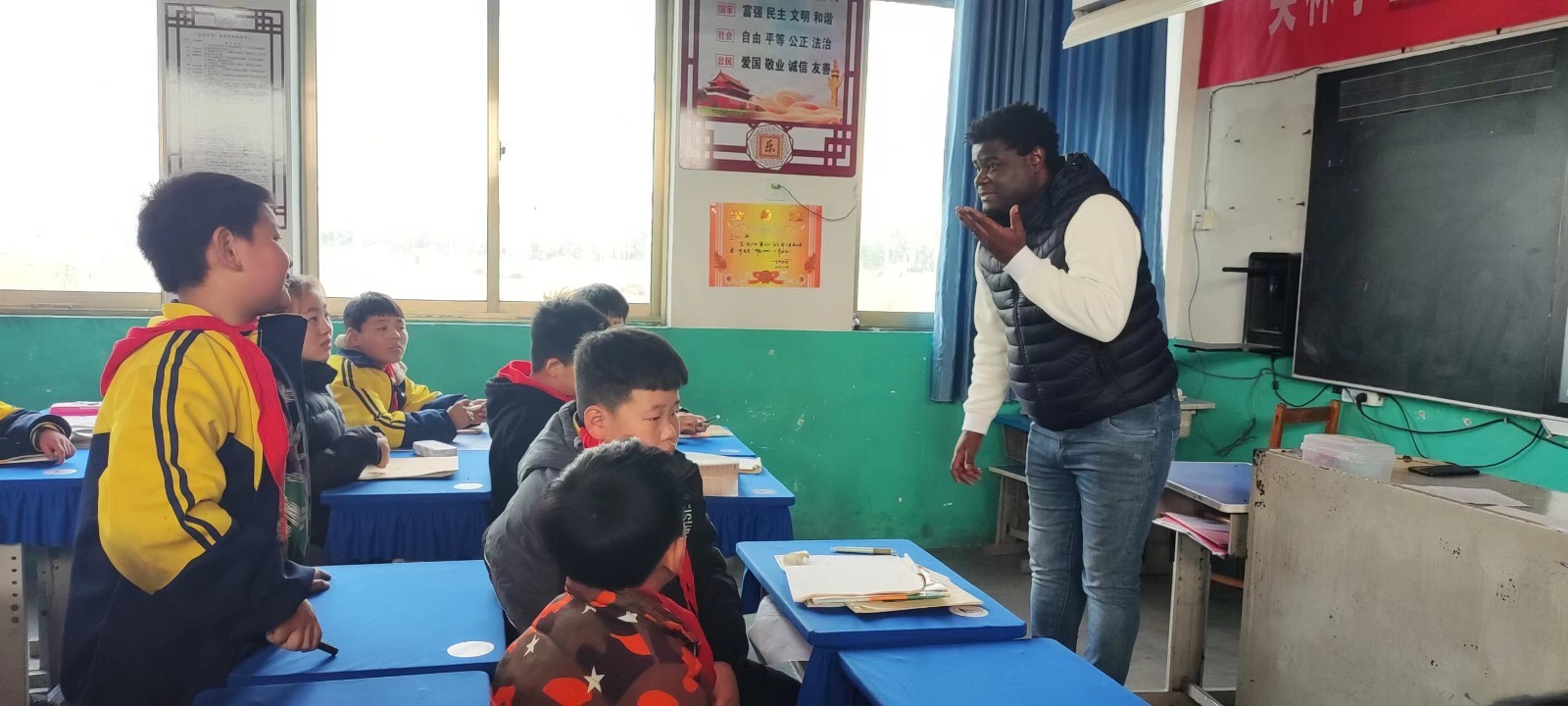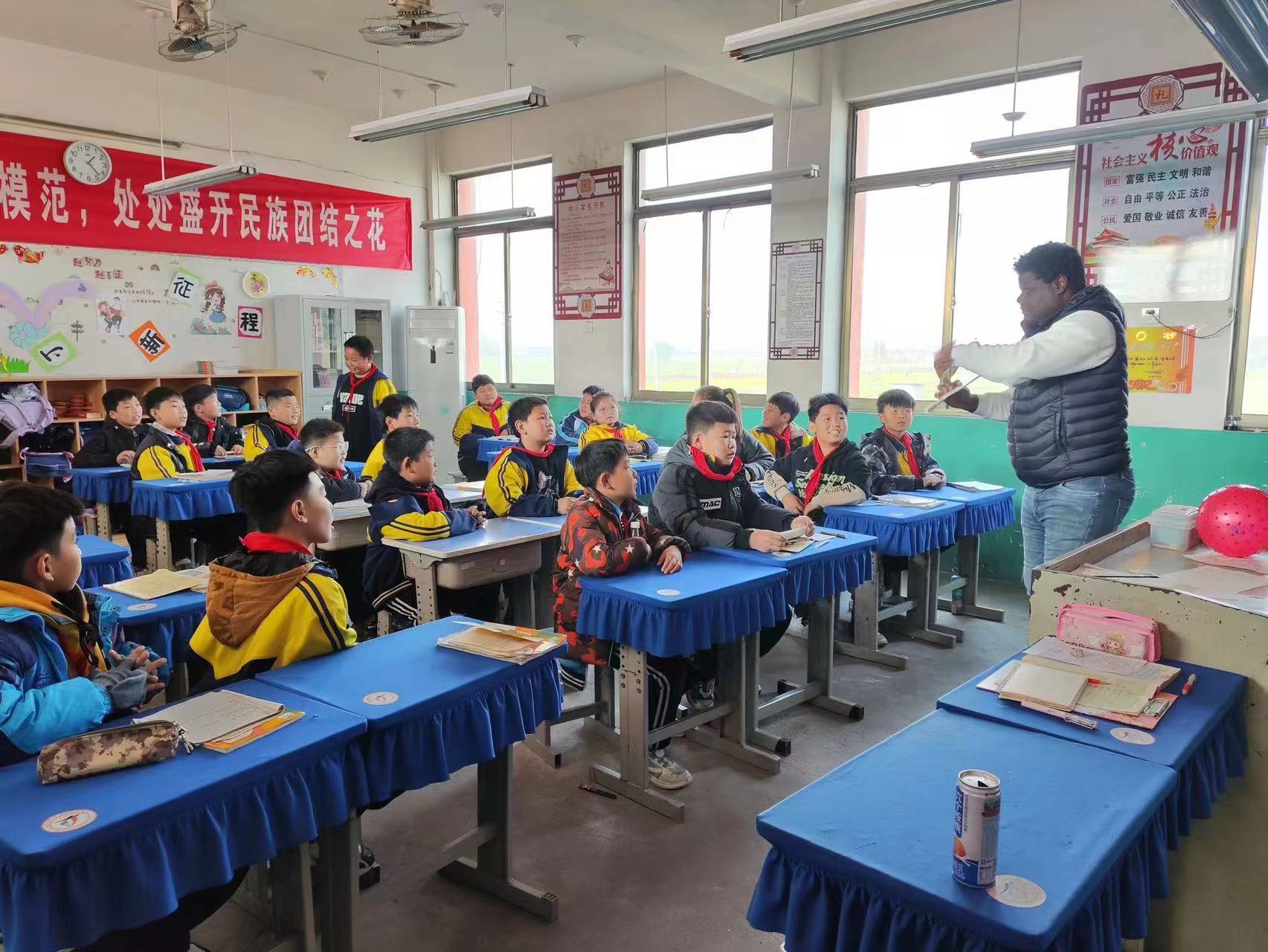 近日,来自喀麦隆的Chris外教走进了枣庄市峄城区吴林街道坝子小学,为英语社团上了一堂精彩的英语课。