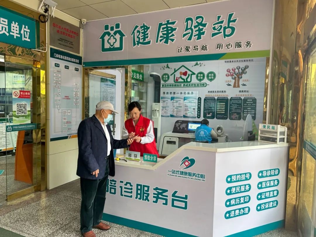 为提升医疗服务能力,以“进门有人迎,问询有人答,问题有人帮”为目标,开设“午晚间门诊”,设立“一站式健康服务中心” “健康驿站”,为居民提供个性化健康服务。利用微信公众号、电子屏、宣传展板对专家简介及出诊时间、预约方式、就医流程进行公示,方便群众获取就诊信息,明白就医。“健康服务员”对“特殊群体”开展陪诊帮办服务,帮助有困难的患者完成就诊期间的缴费、候诊、取药等流程,为患者提供“一条龙服务”。设立“党员志愿服务岗”,让党徽“闪闪发光”,群众就医感受进一步提升。