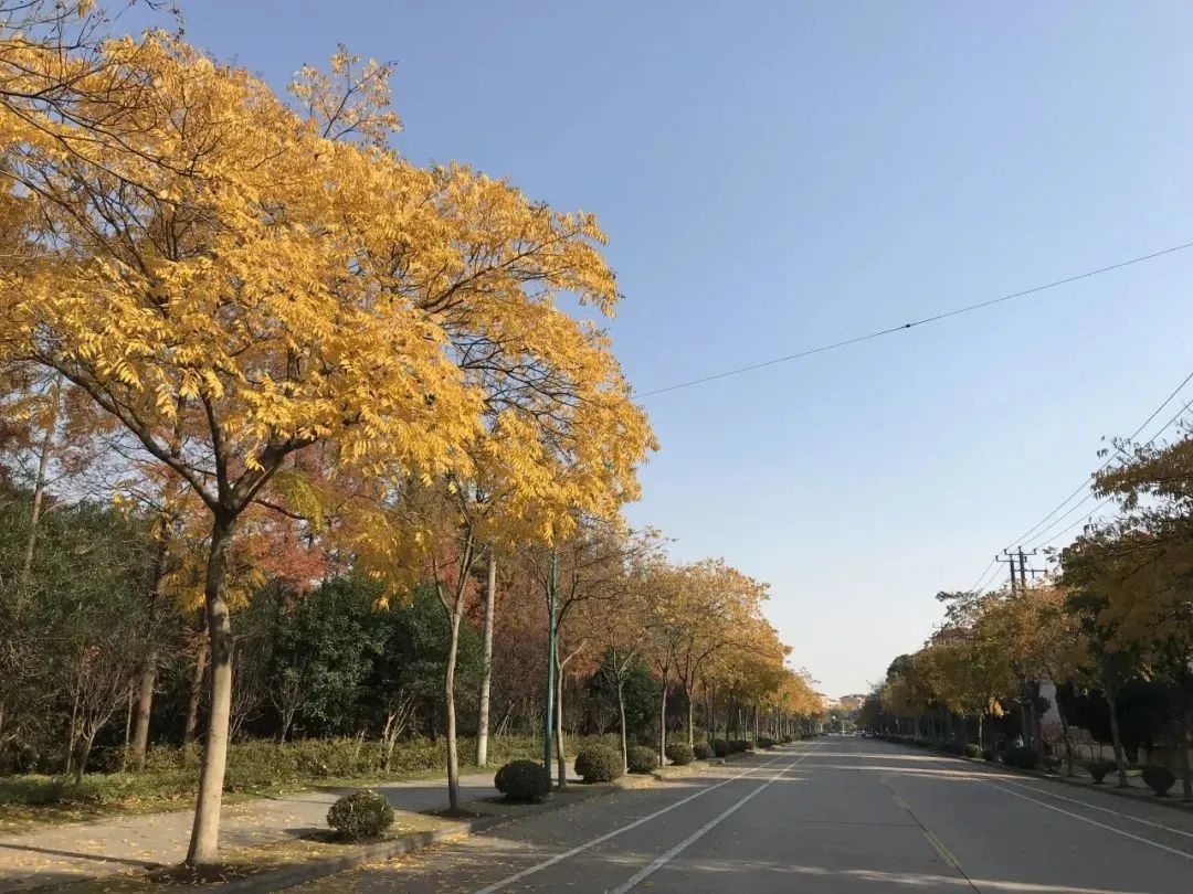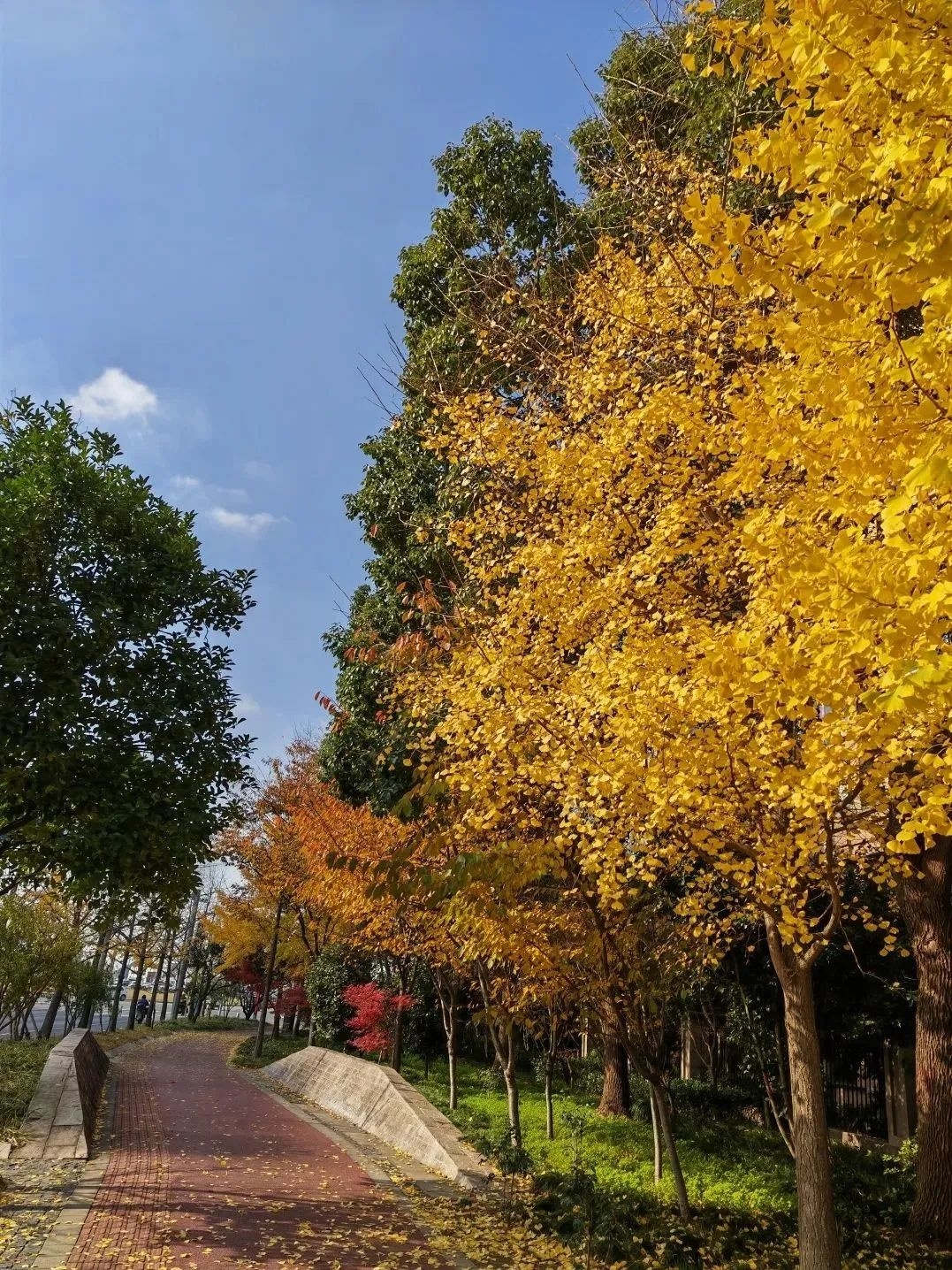 层林尽染,叠翠流金,色彩斑斓的叶子为金山染上缤纷色彩。金色银杏,红色枫树,橘色水杉,在四季轮回中如魔术般换装,构成了一幅秋冬专属的氛围感“油画”。