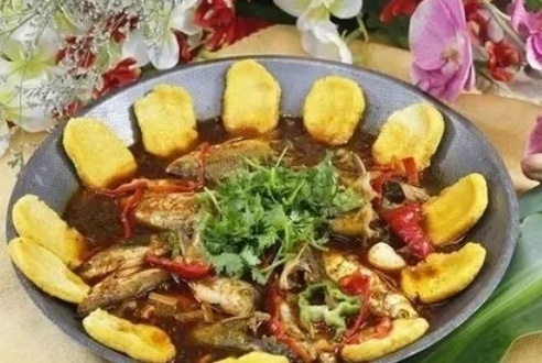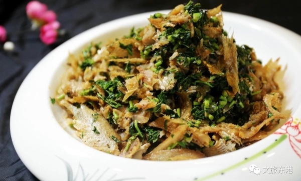 日照本帮菜精选十二味:香椿拌黄尖子鱼、莒县大锅全羊、海沙子面、日照煎饼、清蒸梭子蟹、炒辣蛤、红烧安康鱼、岚山杂鱼锅贴、咸饭、煮海蛎子、鲅鱼水饺、岚山蟹酱豆腐。