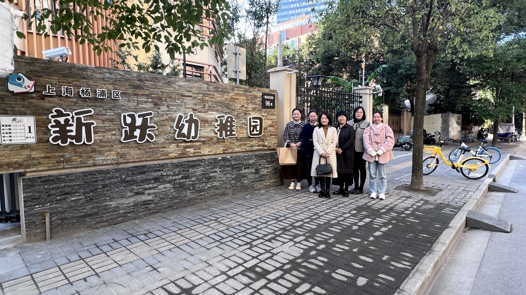 在新跃幼稚园副书记吴湫蓉带领下,实幼老师们参观了幼稚园的教室、特色活动室、户外场地等,了解新跃幼稚园“尽‘新’守护,卓‘跃’发展”的办学理念,沉浸式体验幼稚园浓厚的“馨悦”园所文化氛围。