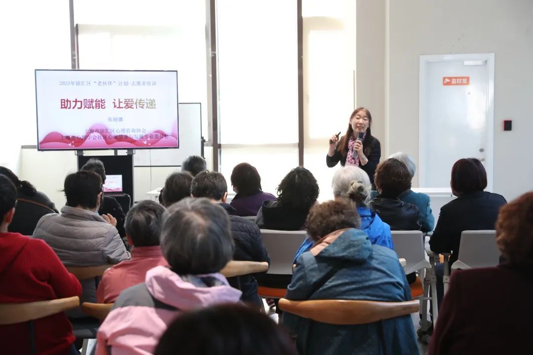 11月21日一早,一批热心公益的老年志愿者齐聚徐汇区枫林街道邻里汇,公共活动室中充满了暖意洋洋的笑容,这里就是徐汇区民政局2023年度“老伙伴计划”志愿者24场培训中其中一场的现场。