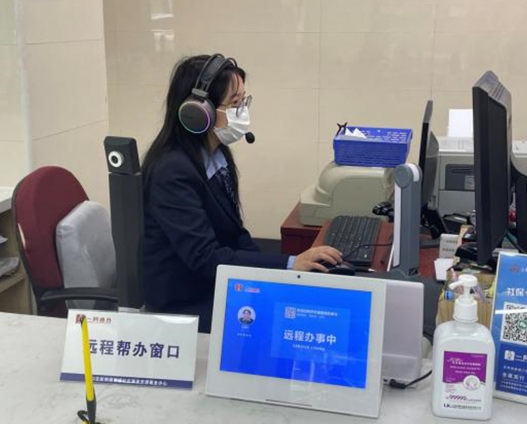 据工作人员介绍,在远程虚拟窗口办理业务时,居民可在受理点帮办人员的引导下,通过双屏一体机完成远程取号、读取身份证、社保卡、资料采集等操作,还可以通过屏幕共享、图像交互等智能网络技术与受理中心工作人员进行语音、视频连线通话,在视频过程中就可以咨询问题、上传下载资料,完成签字确认,让居民足不出社区,“一次都不跑”就办成事。