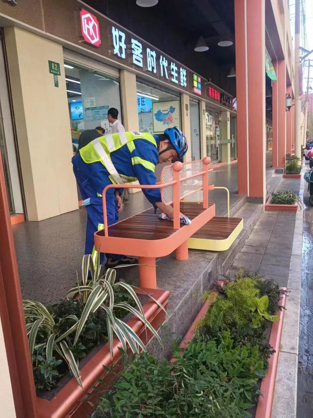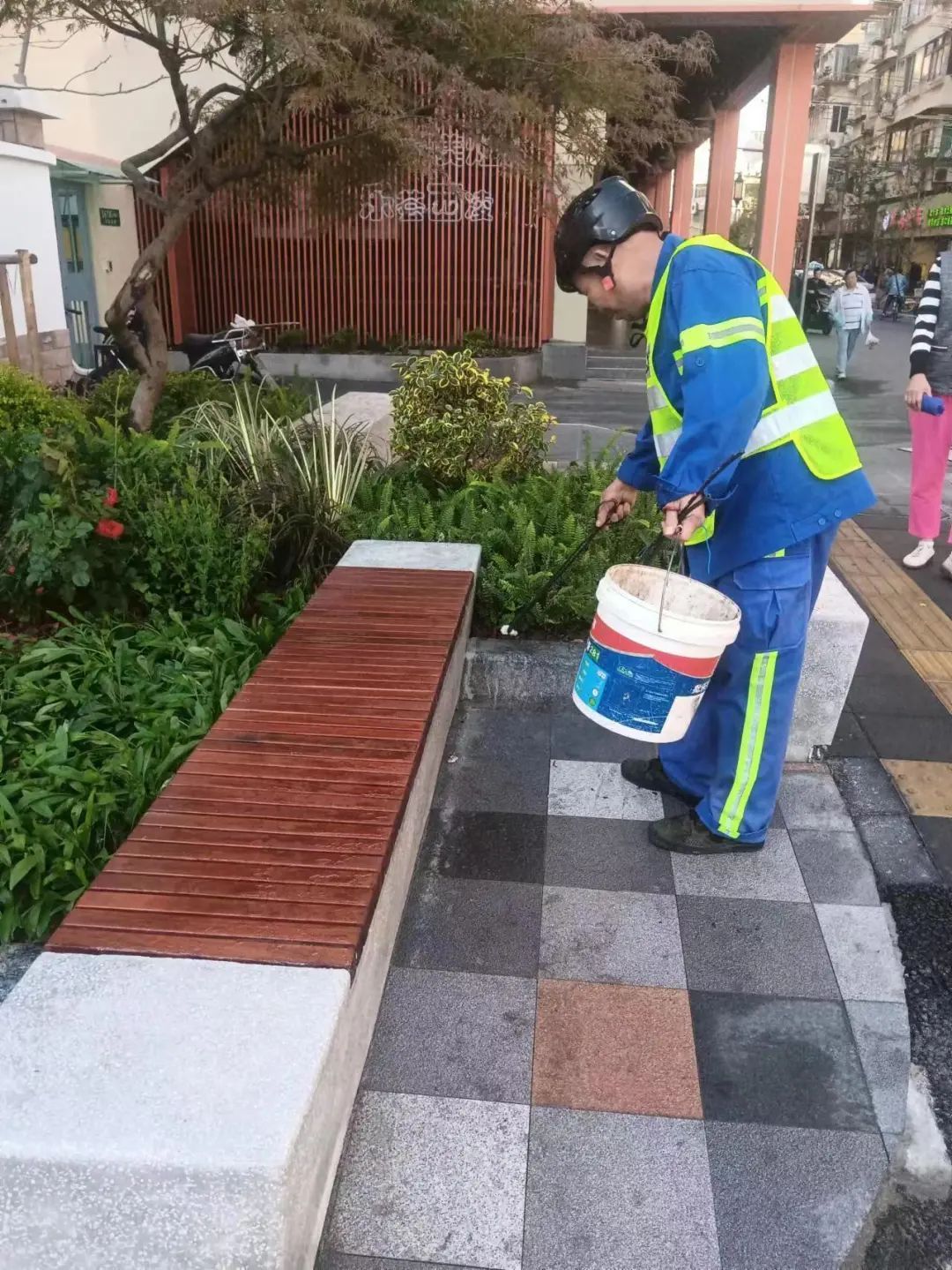在西凌家宅路旁,4个口袋公园、42个花箱、20组休憩座椅,这些就需要人工辅助了。每天,保洁人员会对口袋公园内设施设备定期清擦、消杀,还会定期清除公园路面、绿化带及周边的垃圾、宠物粪便和杂物等,尽最大努力让这些“城市家具”常新常雅。