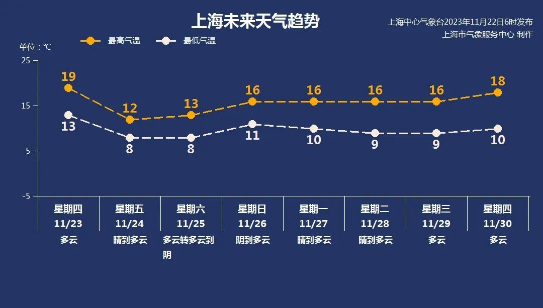 今天(11月22日)为晴转多云的天气,早晨局部地区有雾,夜里转阴天。在西南风的助阵下,今天将达到这波升温的“顶峰”,最高气温可达23℃,最低气温也有所提升,市区在13℃附近,郊区在8℃~12℃。相对湿度在90%~40%,依然较为干燥,要注意补水。上下班天气