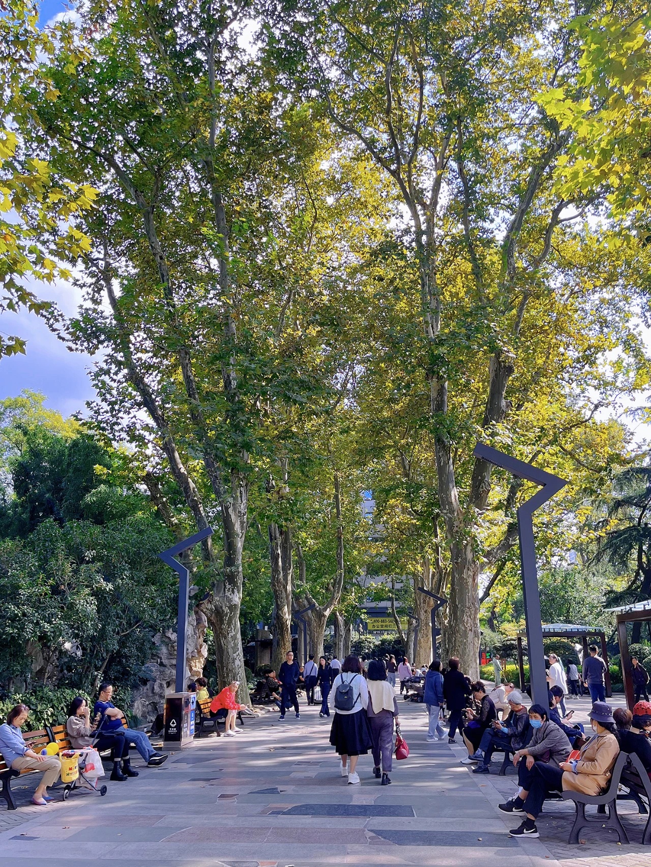 阳光晴朗的日子里,静安公园古悬铃木大道的长椅上,总是坐满了正在晒太阳的阿姨爷叔;步道贯通的静安苏河湾畔,总有人在散步快走;
