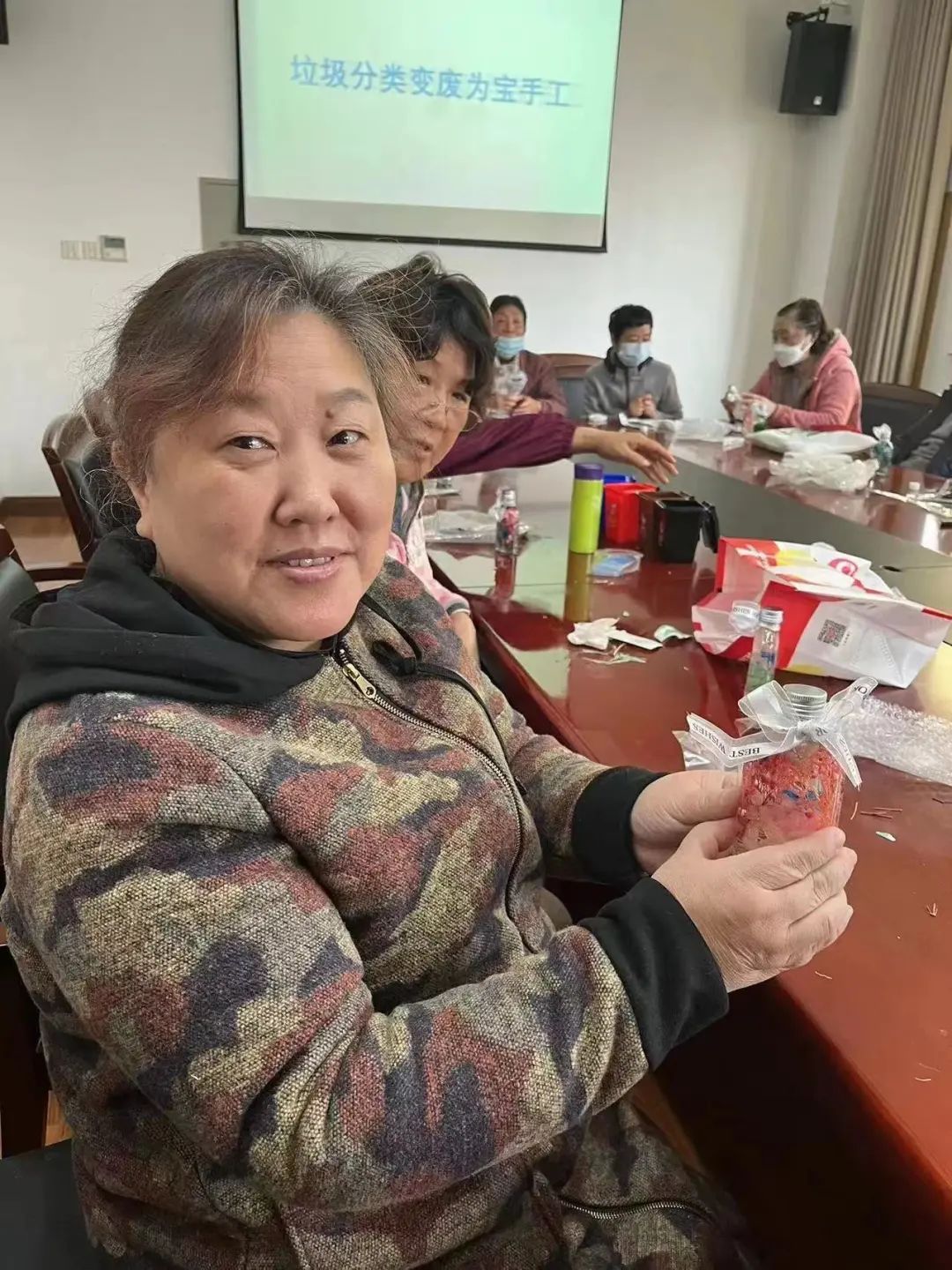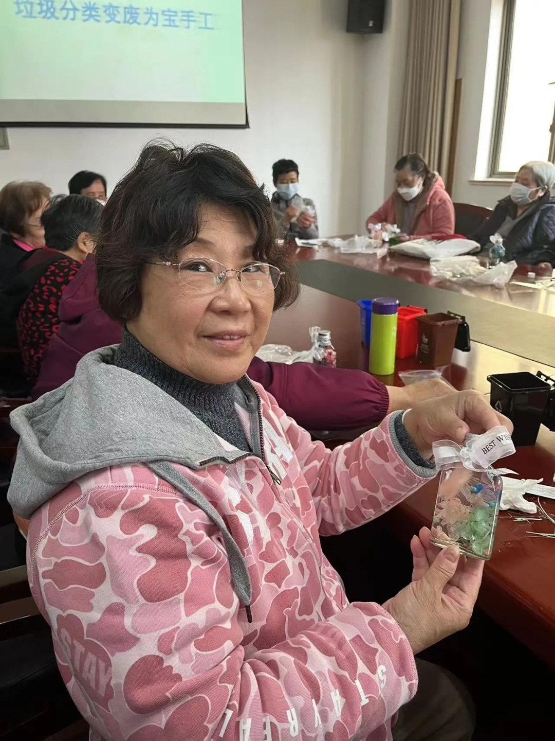 “晒干并染色的花草,加上饮料玻璃瓶和矿物油,就能变成一瓶花草浮游瓶。”在旧物改造手工课堂中,讲师教大家如何将身边“无用”的物品变废为宝。一名志愿者阿姨高兴地说:“原来旧物也可以焕发生机,我们可以利用好身边每件物品,为生活增添乐趣的同时,从源头减少垃圾产生。”