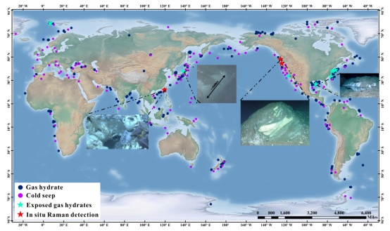 海洋中的天然气水合物储量丰富,其所蕴含的天然气资源总量相当于传统化石燃料碳总量的两倍,是未来理想的清洁能源之一。天然气水合物不稳定,海平面变化、海底地震、滑坡、开采不当等都有可能造成其失稳分解。由于甲烷气体具有较强的温室效应,漫长的地质历史时期中经常发生的大规模环境变化,很可能与海底大量天然气水合物分解有关。近几十年来,人们对天然气水合物的性质、稳定性等做过各种实验、预测与评估,但截至目前,天然气水合物发生失稳在海洋中经历的上升过程仍未知,其携带冷泉中的甲烷气体在海水中能够到达的深度仍不清楚。