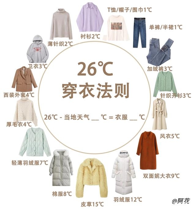 研究表明,当气温+穿衣后增加的温度=26℃时,人会感觉最舒适。