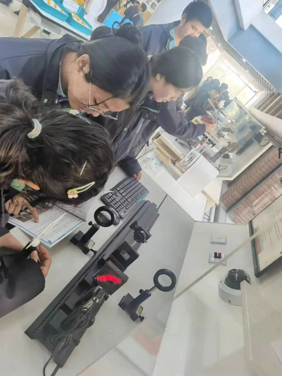 走进同济大学第一附属中学的“5G未来科学家与工程师实验室”,仿佛置身科技馆的高阶体验区——有“飞鸟入笼”“神奇转轮”“正态分布”等小型实验器材,也有“弦线上的驻波”“氢原子光谱的观察与相关物理量的测定”等依据新课程新教材增添的实验设备。