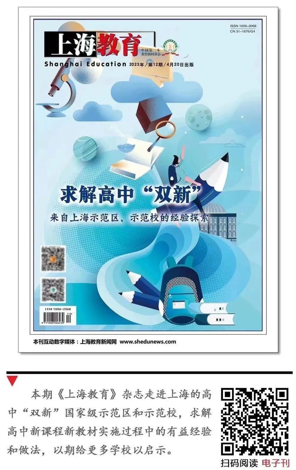 2023年4月20日的《上海教育》杂志采访了一区三校,并专访了上海市教委副主任杨振峰,推出《求解高中“双新”——来自上海示范区、示范校的经验探索》专题,探寻高中新课程新教材实施过程中的有益经验和做法,以期给更多学校以启示。
