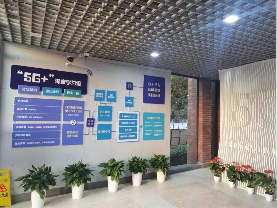 同济一附中在2020年入选普通高中新课程新教材实施国家级示范校,学校探索利用数字技术赋能“双新”高质量实施,打造的“5G+深度学习馆”鼓励学生解决真实情境中的实际任务或问题,助力学生的创新性学习。