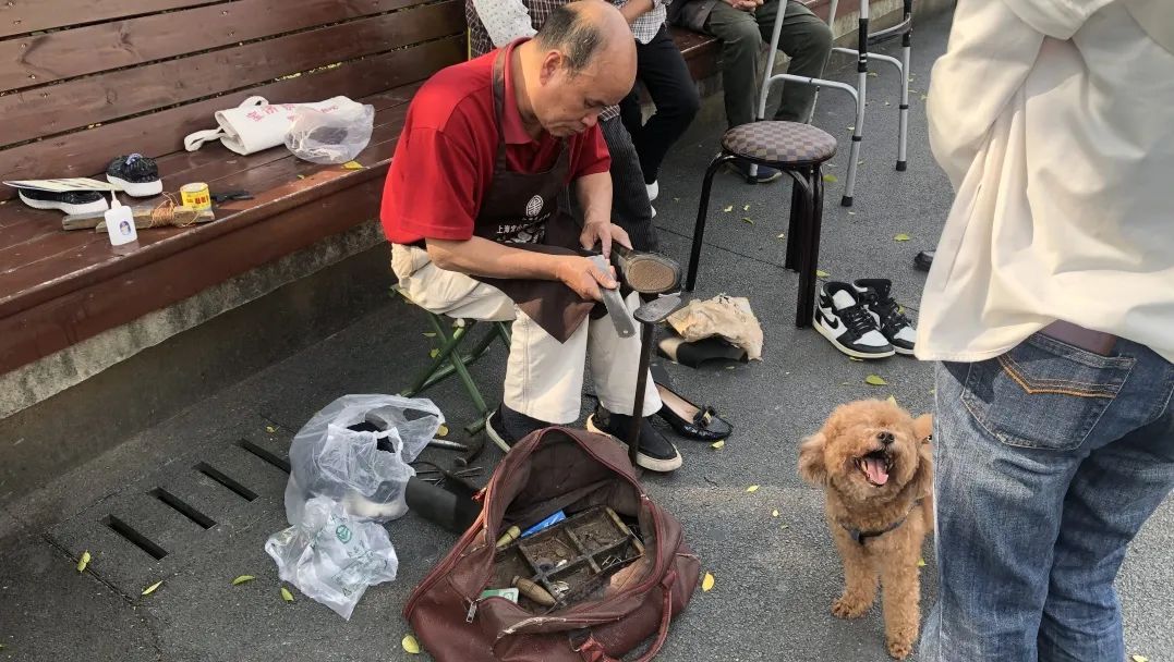 小修小补摊位在宝林六村居民区深受欢迎,志愿者旁的长椅上坐满了人,大家纷纷拿出家里需要修补的东西来请义工志愿者帮忙修理,志愿者高超的技术得到居民的夸赞。