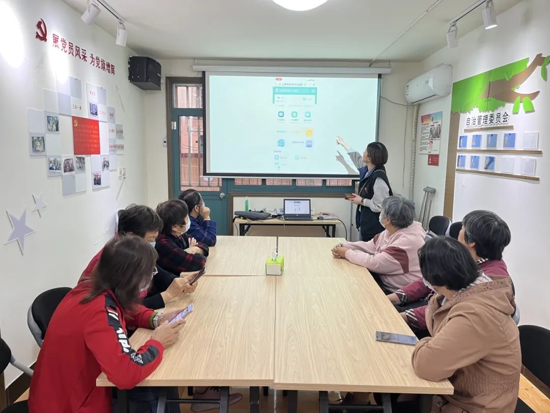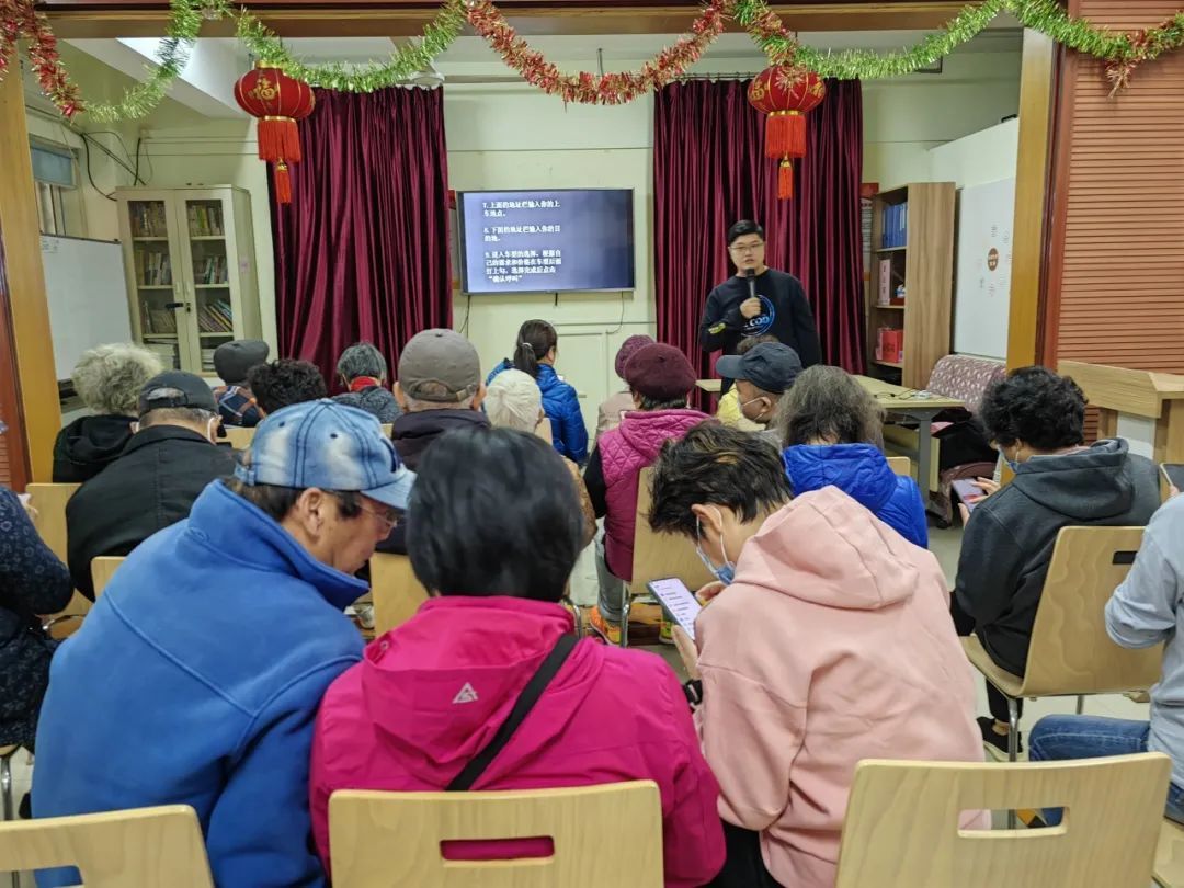 长桥街道社区(老年)学校携手长桥七村居委在活动室开展了“数字出行及网络安全”老年数字教育进社区行动。