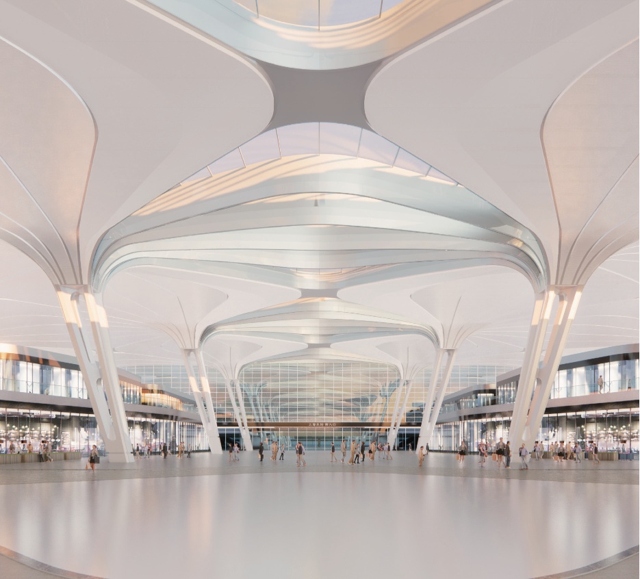 据悉,东方枢纽上海东站项目位于浦东新区祝桥镇,项目于2023年3月开工。上海东站承接国家沿海通道重要功能,通过捷运、市域铁路、城市轨交等与浦东机场共同组成综合交通枢纽,引领支撑周边区域和东方航空城开发,服务长三角区域一体化发展。目前,上海东站地下部分基坑以及桩基础已经开始施工,车站综合体预计将于2027年开通运营。日前,在2023年上海城市发展创新论坛上,上海东站建设指挥部总指挥、上海市人民政府参事黄融作题为《东方枢纽——超大型综合枢纽建设再创新再探索》的主旨演讲,介绍了东方枢纽上海东站创新的一系列探索举措。黄融表示,作为一座世界级综合枢纽——上海东站以前瞻思维有机衔接各类交通方式,着力体现生态绿色,数字赋能特色,打造升级版的综合交通枢纽,首次在高铁客站引入航空模块,深化了空铁一体化,实现航站楼的完整空侧功能,空铁换乘距离由虹桥近1000米缩短至约250米。首次将国家铁路、市域铁路进行一体化运营,为国家铁路、多线路的市域铁路共站设置,针对不同客群特点定制化的设计空间,创新性建立信源互通、系统互联、信息共享渠道,实现全站一体化调度指挥、设备一体化运营管理、旅客一体化出行体验;打造首个超低能耗铁路客站枢纽,通过系统分析,制定符合建筑特点的被动式节能措施,实践双碳智慧,构建未来城市;首次在高铁客站咽喉区上方实施城市综合开发,总开发量达24万平方米,缝合铁路对城市功能的割裂,实现从出站到最近商业功能的时长缩短到1分钟以内;创新性采用立体交通组织系统模式,通过高铁与市域铁路站场拉开的空隙,打造中央换乘光谷,串联城市配套的交通设施,包括地铁、出租、公交、市域铁路等,形成一个上下贯通的空间,实现5分钟以内覆盖大多数换乘方式;首次在高铁客站设置空铁物流。上海东站充分利用临近国际航空货站的优势,在枢纽内部设置空铁联运功能;首次采用光伏建构一体单元式屋盖的铁路站房,降低全生命周期碳排放,整合了建筑第五立面的美观、机电一体化和绿色低碳等设计理念。上海东站规模将按照