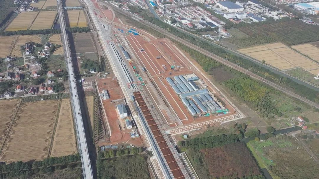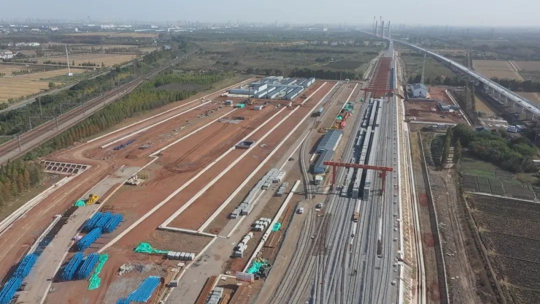 为集约用地,沪苏湖铁路铺轨基地设于石湖荡货场,已于今年4月30日完工,达到长钢轨车进出场条件。目前,长钢轨进场104公里,占铁路设计总量的24.5%;轨枕进场2.7万根,占设计总量的8.5%。按照计划,沪苏湖铁路将于明年1月1日正式铺轨。