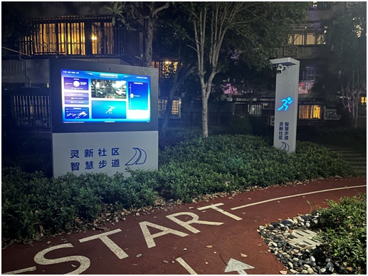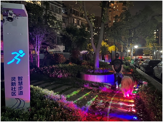 吃过晚饭后,杨阿姨来到了新建成的智慧步道,先开始简单的热身运动,伴随着她的前进步伐,步道上的七彩灯光跟随亮起,半个小时后散步结束的她看了看自己的大屏运动信息数据和排名,心满意足地发了运动打卡朋友圈,而智能酷炫的步道再一次引发了阵阵点赞。