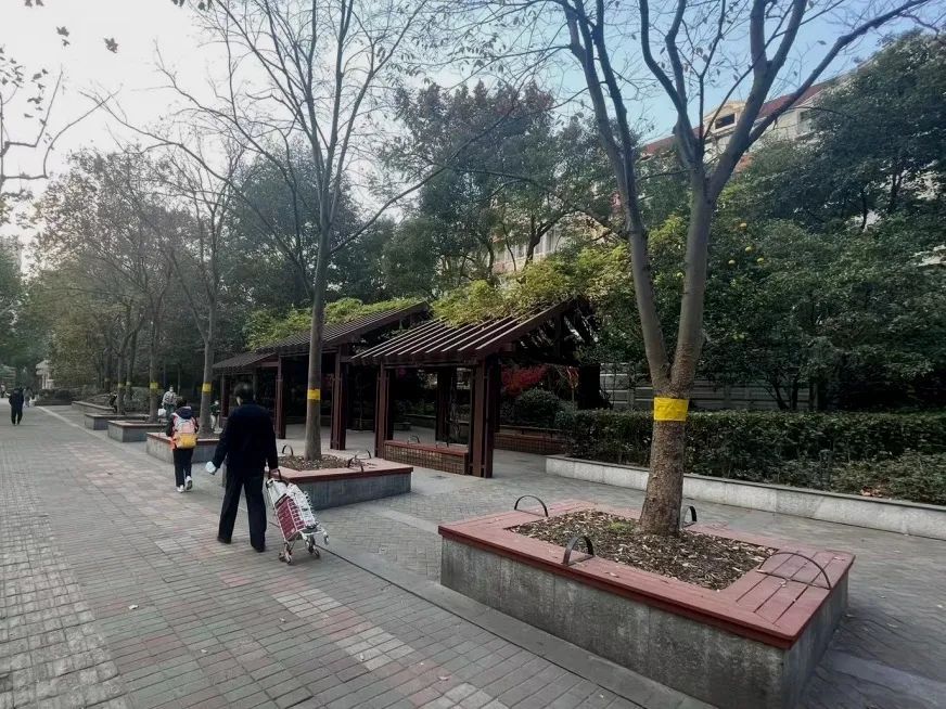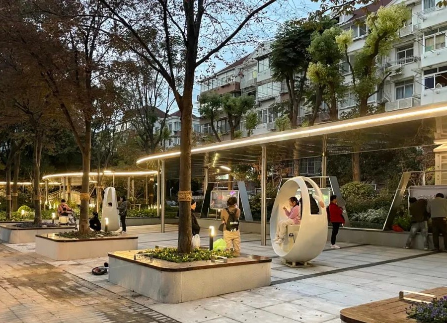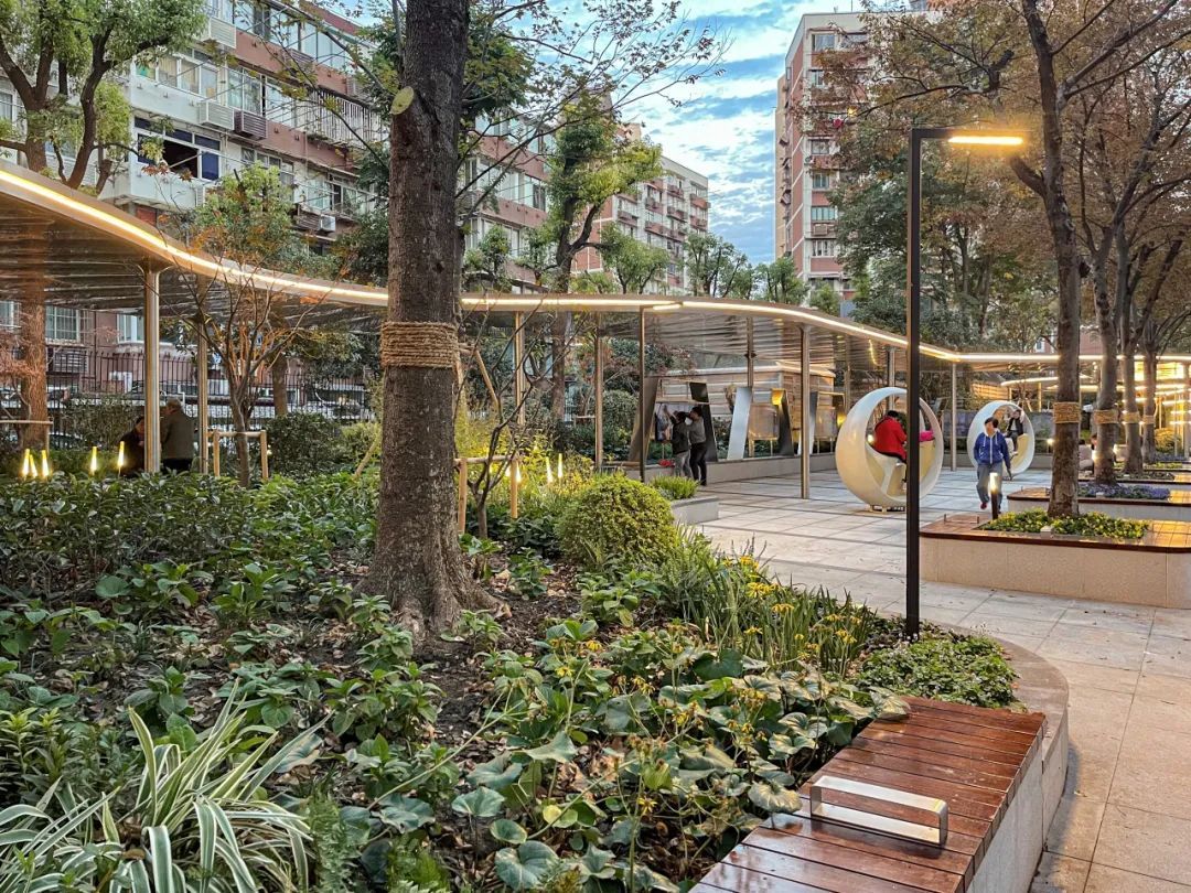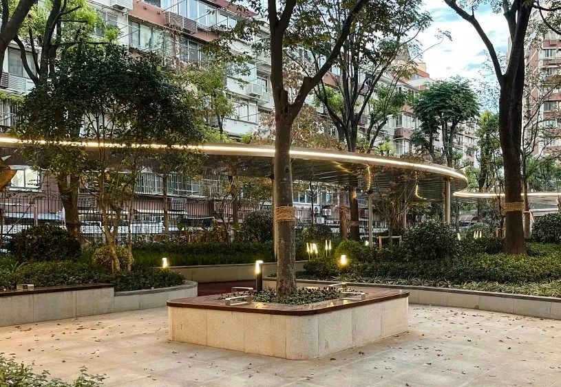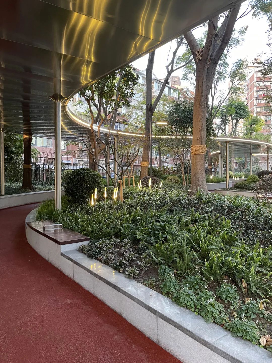 此外,高兴花园内还保留了原有树池座椅,并对尖角部分做了圆弧软化处理,使游览变得更为舒适安全。