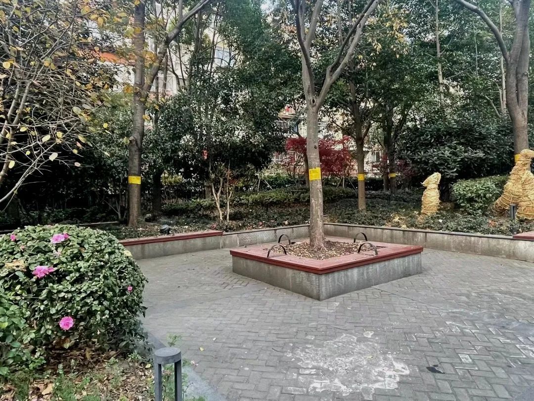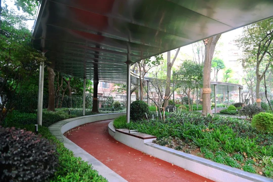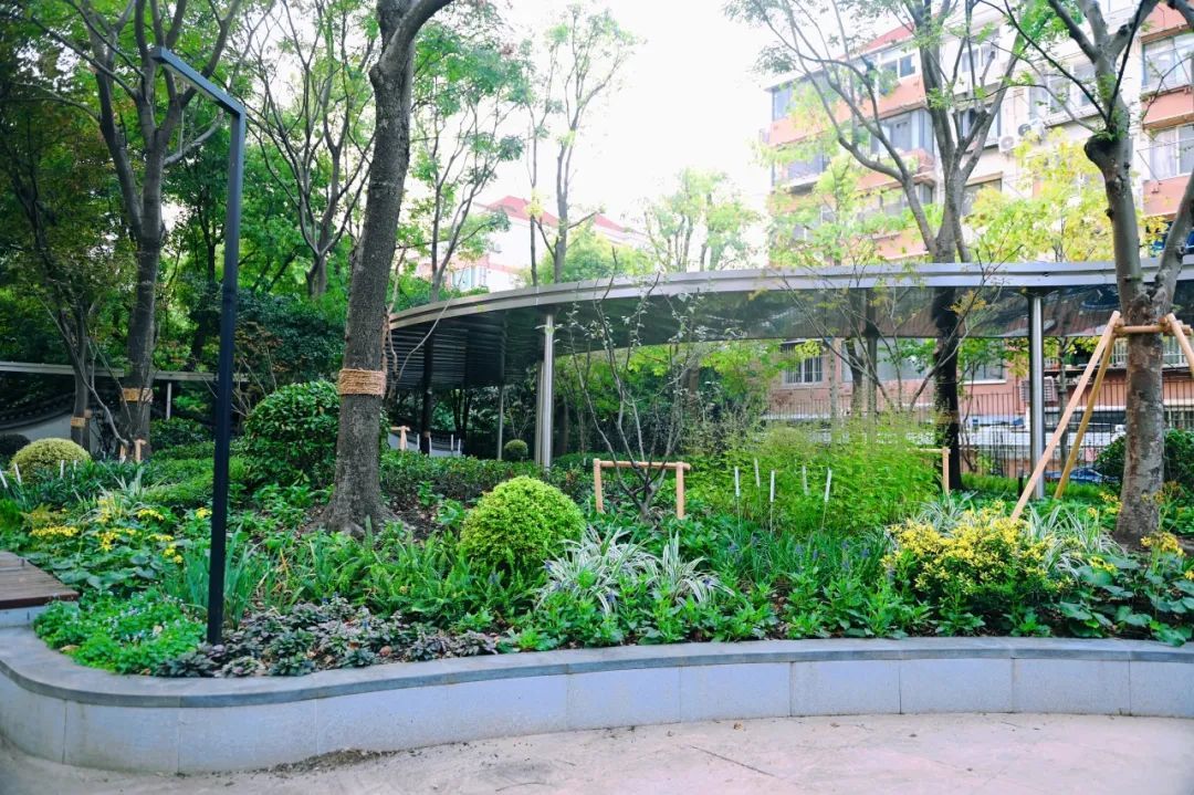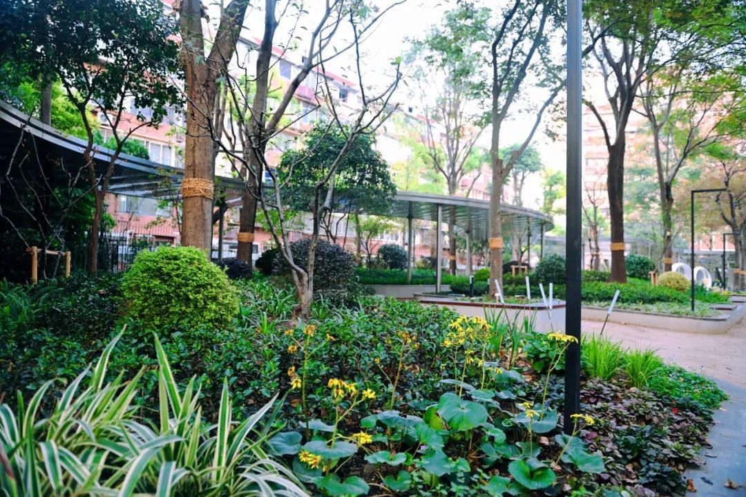 高兴花园内的绿化经过重新整理,保留原有大树,移除部分长势衰弱的中层灌木,并将内部绿化简化,增强视觉通透感。同时,高兴花园以石蒜为特色的植物,并结合多种耐阴地被,打造“林下有花”的美丽景观。