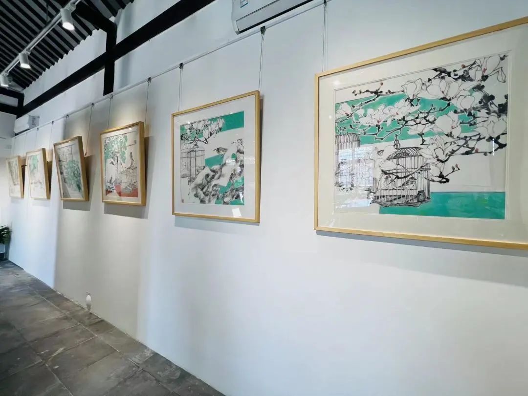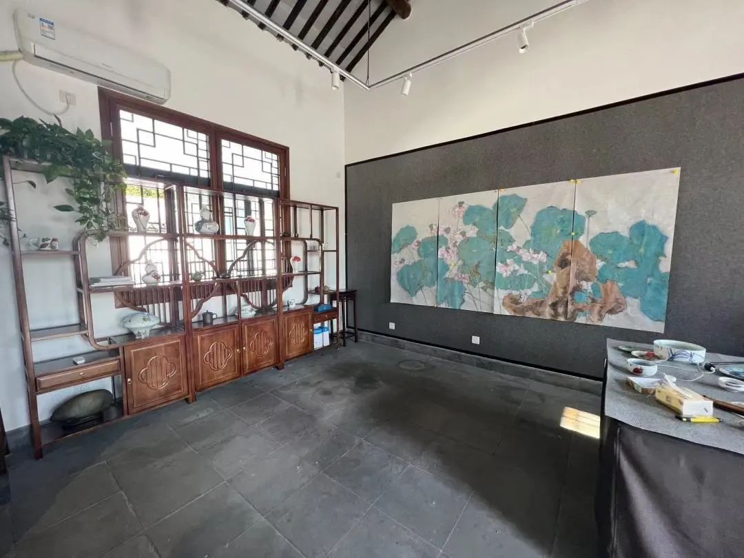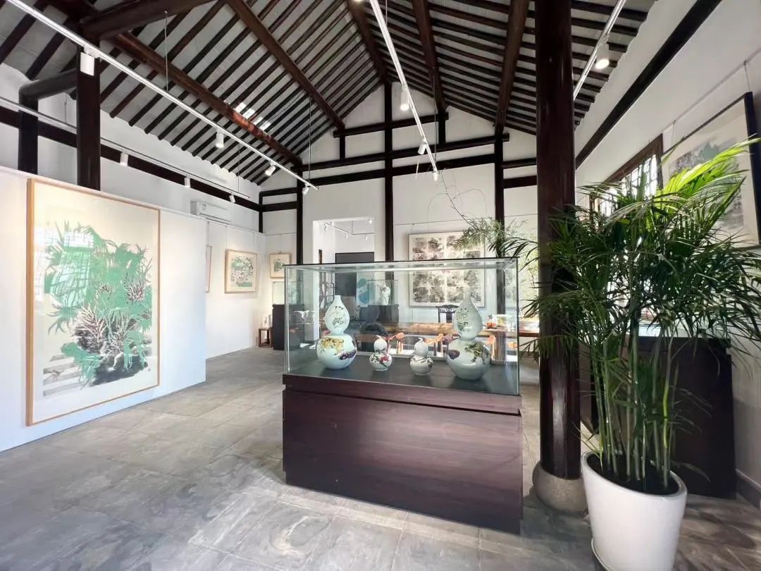 白墙黛瓦的“众文空间”坐落于天平村村委会旁。150多平方米的空间敞亮舒爽,颇具特色的中国画将这个小而美的空间布置得清新雅致。