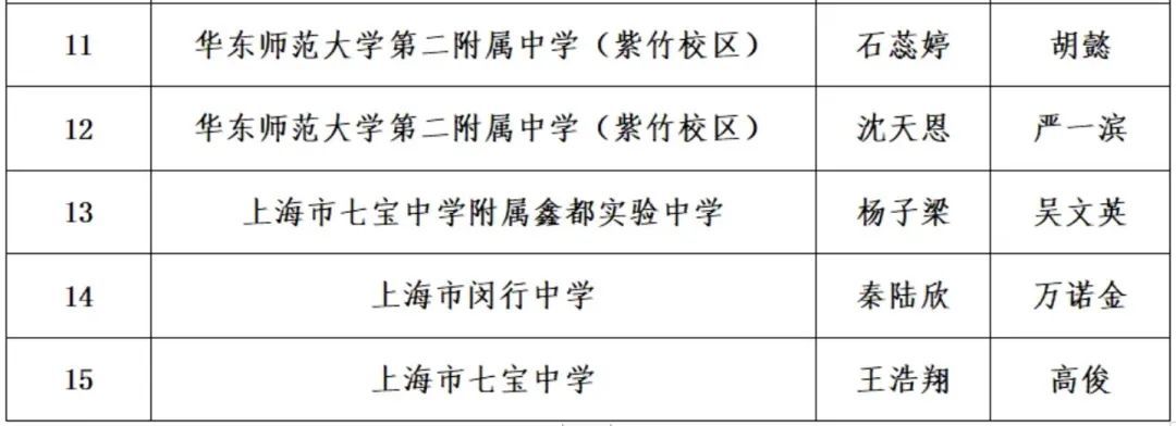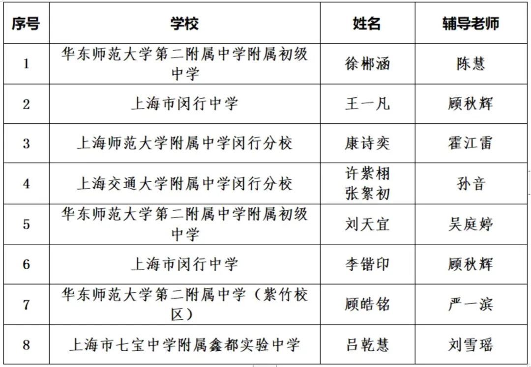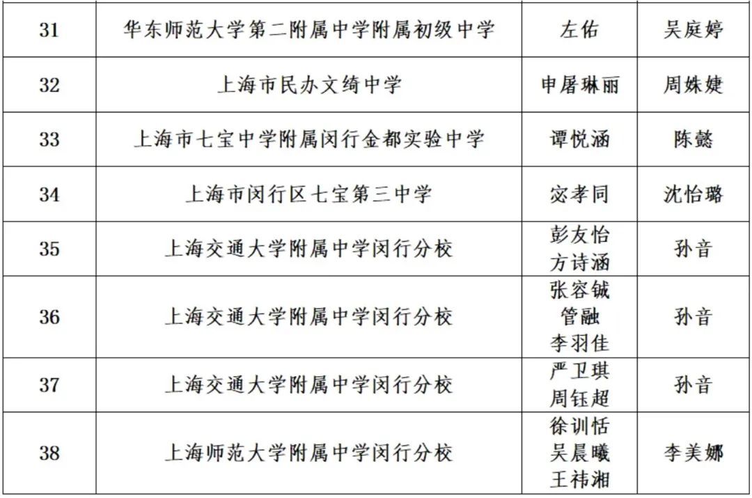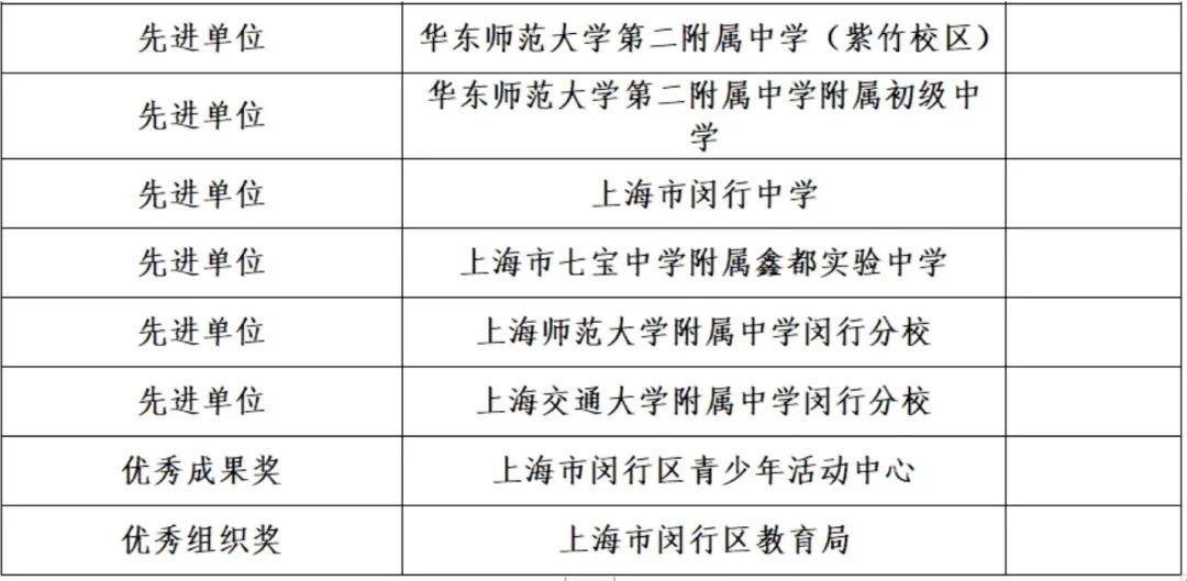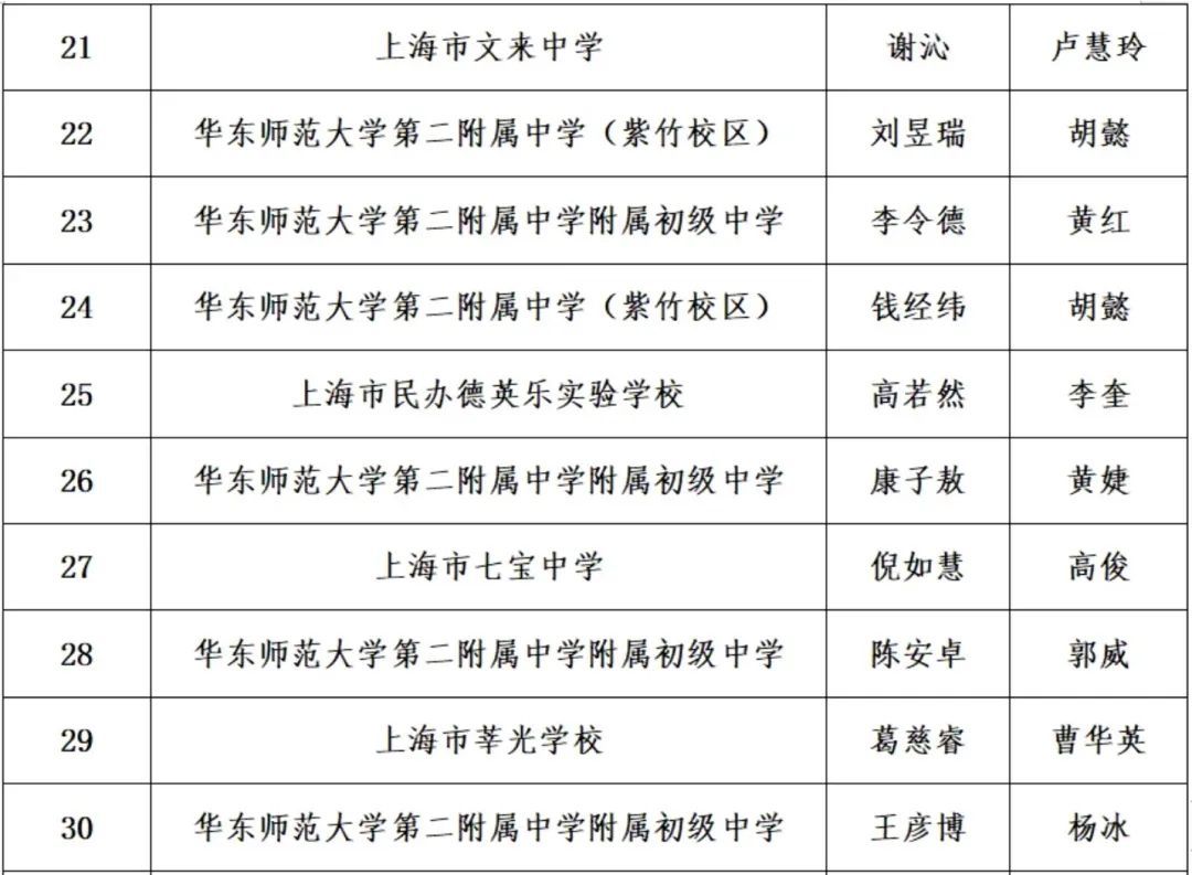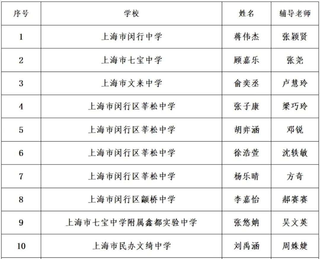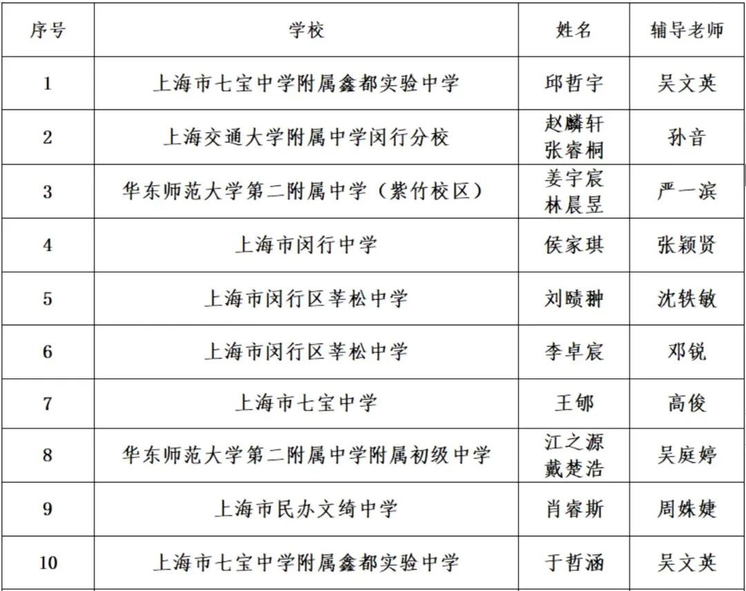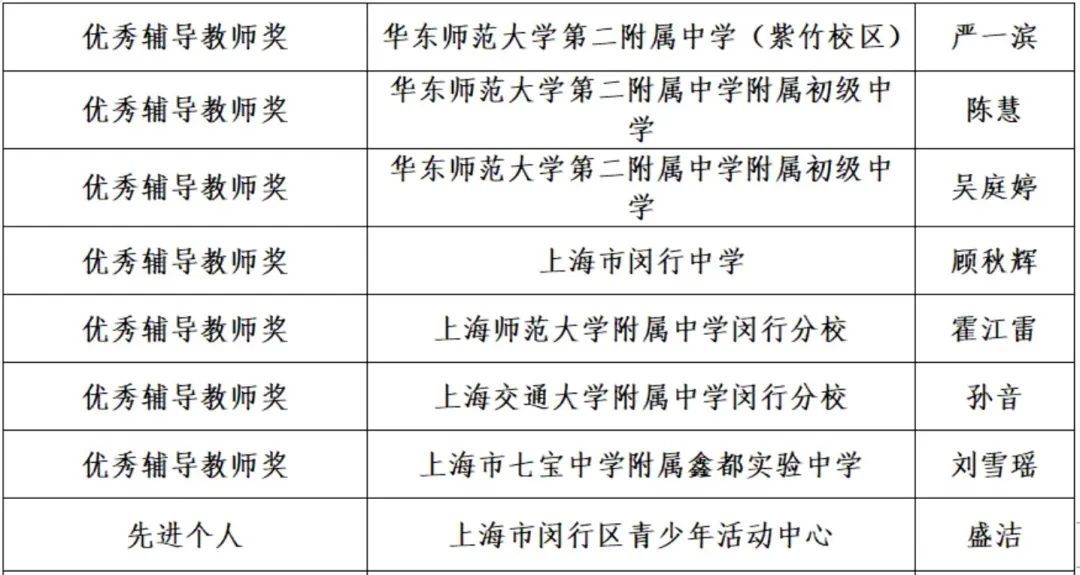 第二十一届上海市百万青少年争创 “明日科技之星”活动 获奖名单