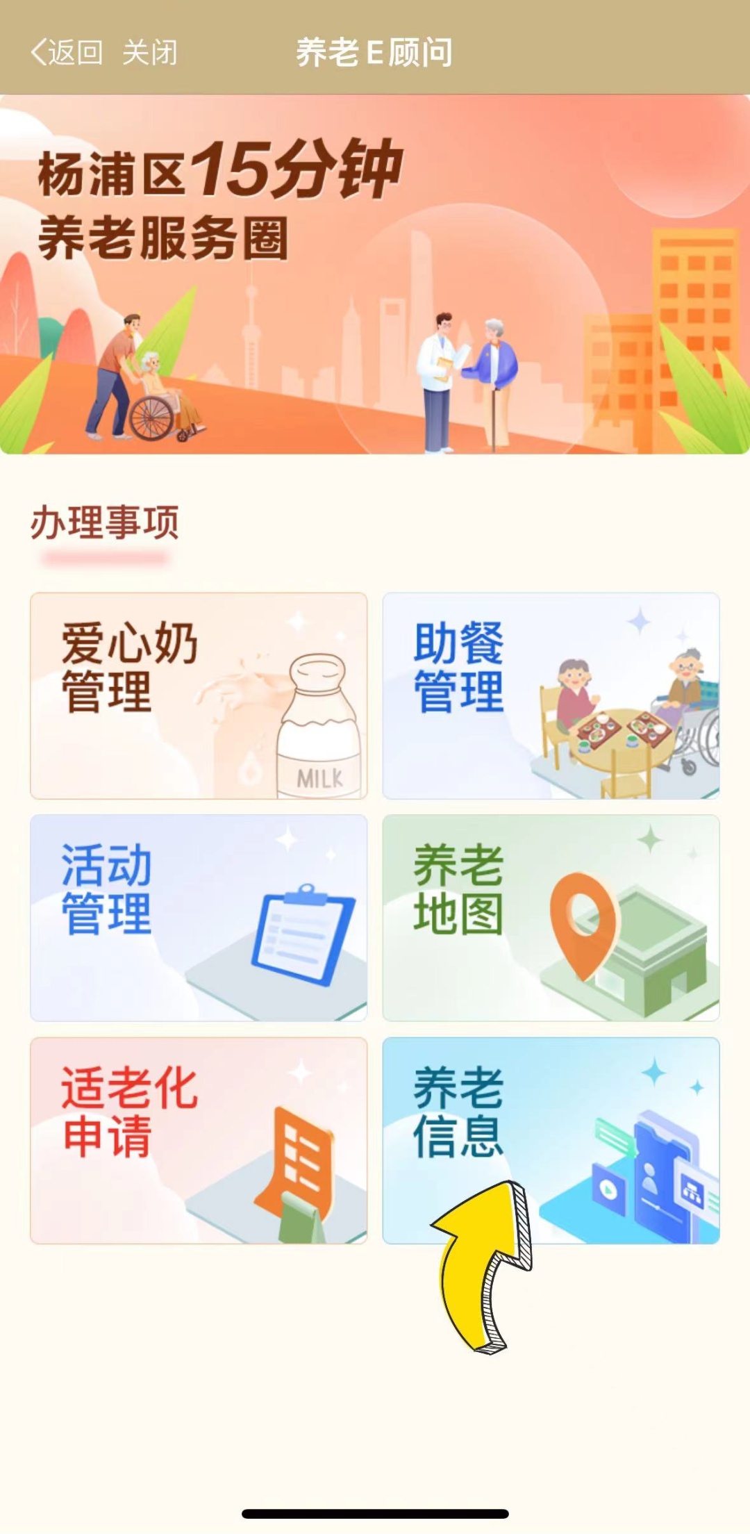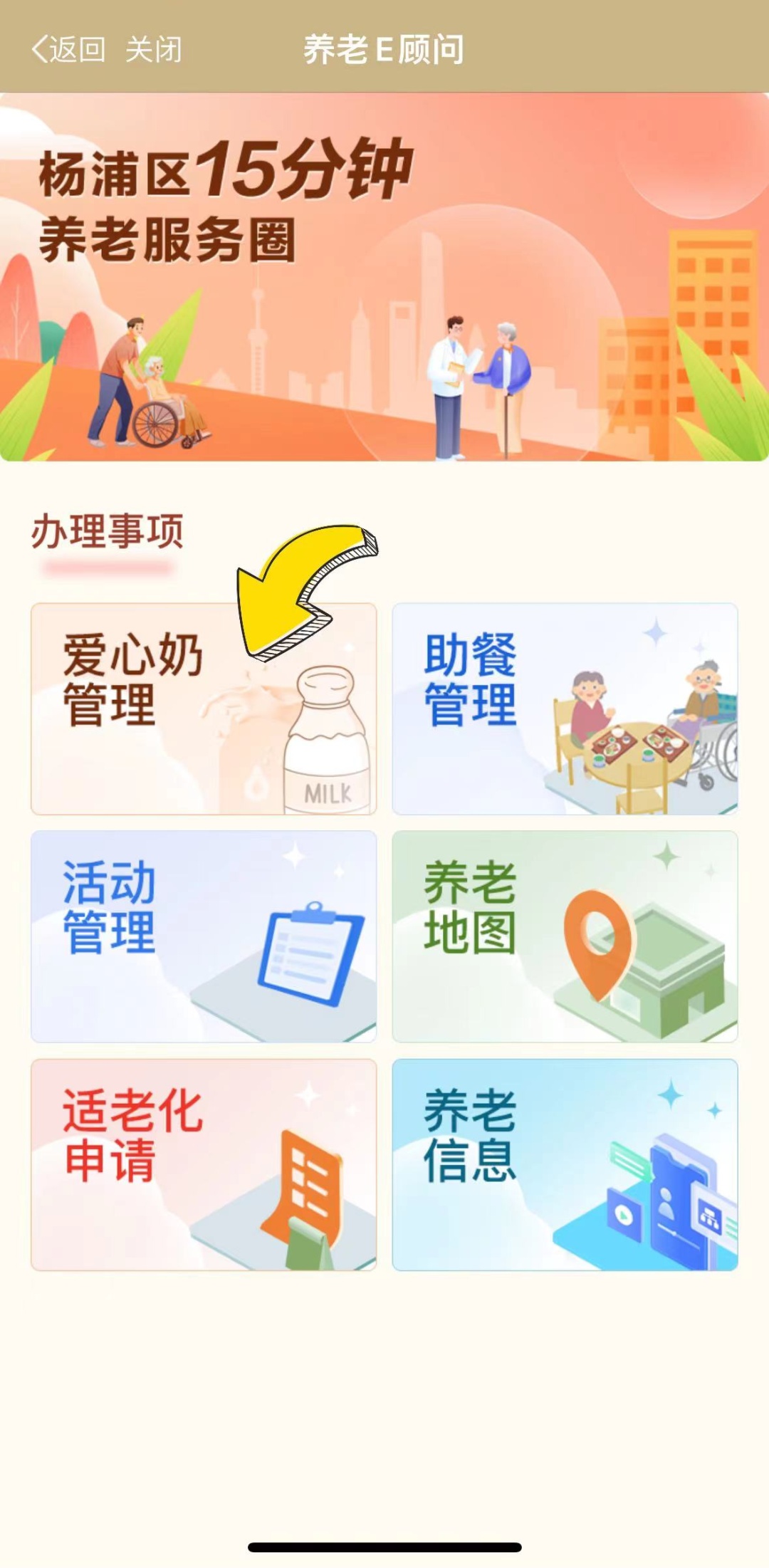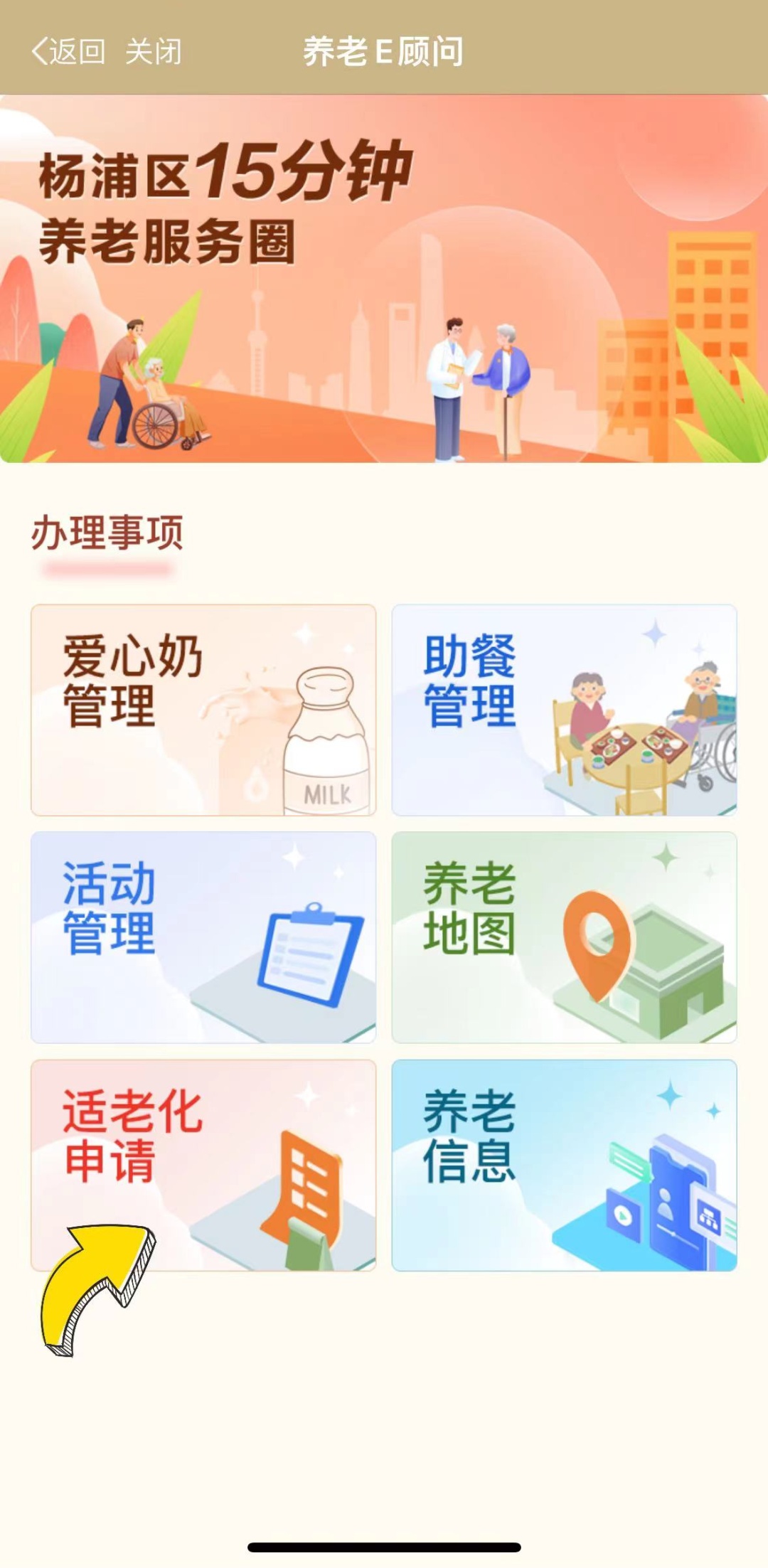 同时,在养老信息及活动管理这两项办理事项上,新增养老地图、助餐管理、适老化申请、爱心奶管理等四大功能板块,帮助杨浦老年群体更好地融入智慧社会、享受智慧生活。