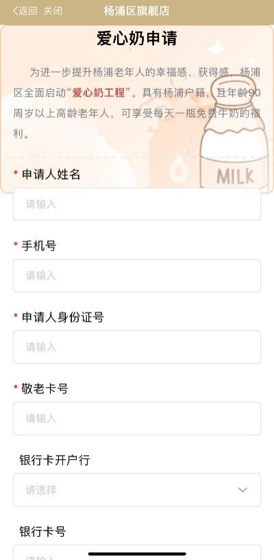 具有杨浦户籍、且年龄90周岁以上高龄老年人,可享受每天一瓶免费牛奶的福利。据介绍,以往需要办理人前往申请人户籍所在居委会线下登记申请,且需要携带一堆实体证件,较为不便。目前该服务可通过“养老E顾问”的“爱心奶管理”服务,线上上传申请人证件信息,并填写相关信息情况进行申请,审核通过后即可享受每天一瓶爱心奶福利。