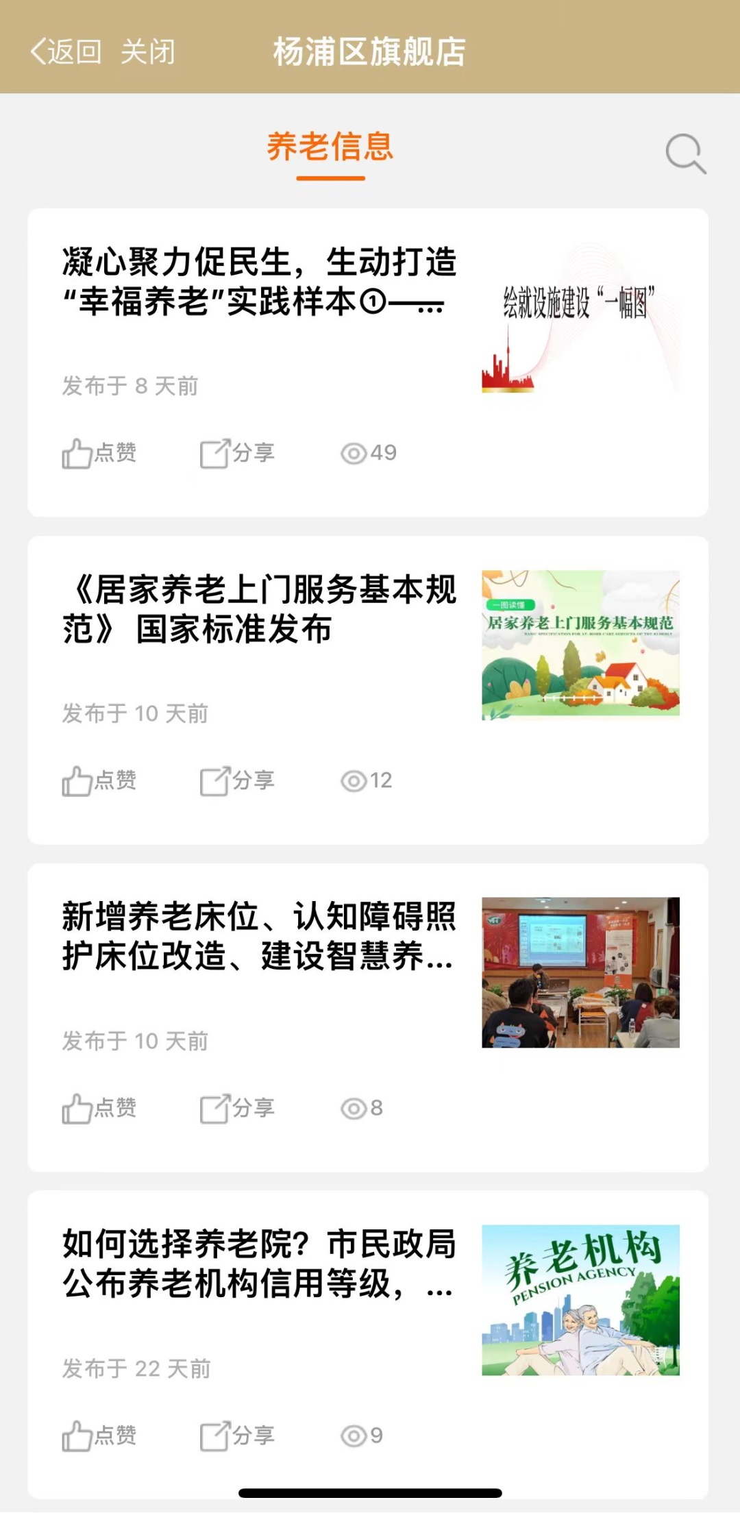 养老信息服务板块汇集了全区最新养老相关新闻资讯及政策信息,老人只需动动手指即可掌握养老服务最新动态,方便老人更快跨越“数字鸿沟”,融入智慧社会。