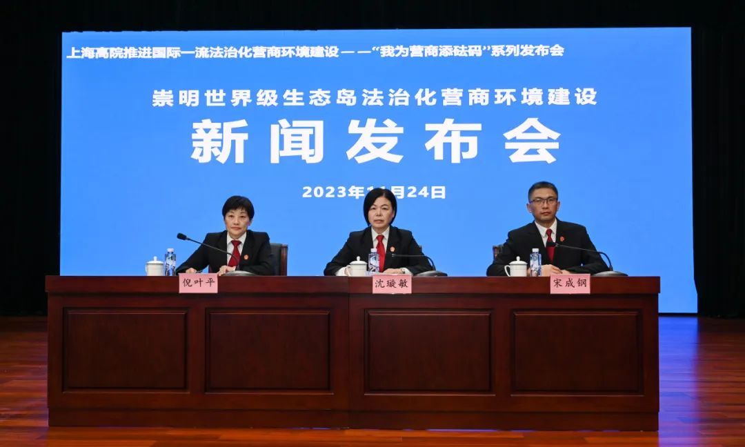 作为崇明世界级生态岛法治化营商环境建设的参与者、实践者,11月24日上午,上海市崇明区人民法院(以下简称崇明区人民法院)召开崇明世界级生态岛法治化营商环境建设新闻发布会,发布《关于进一步推进崇明世界级生态岛法治化营商环境建设专项行动计划6.0版》(以下简称行动计划)、《上海市崇明区人民法院服务保障民营经济高质量发展审判白皮书》(以下简称白皮书)和10起典型案例。此次发布会是上海市高级人民法院推进国际一流法治化营商环境建设——“我为营商添砝码”系列发布会之一。