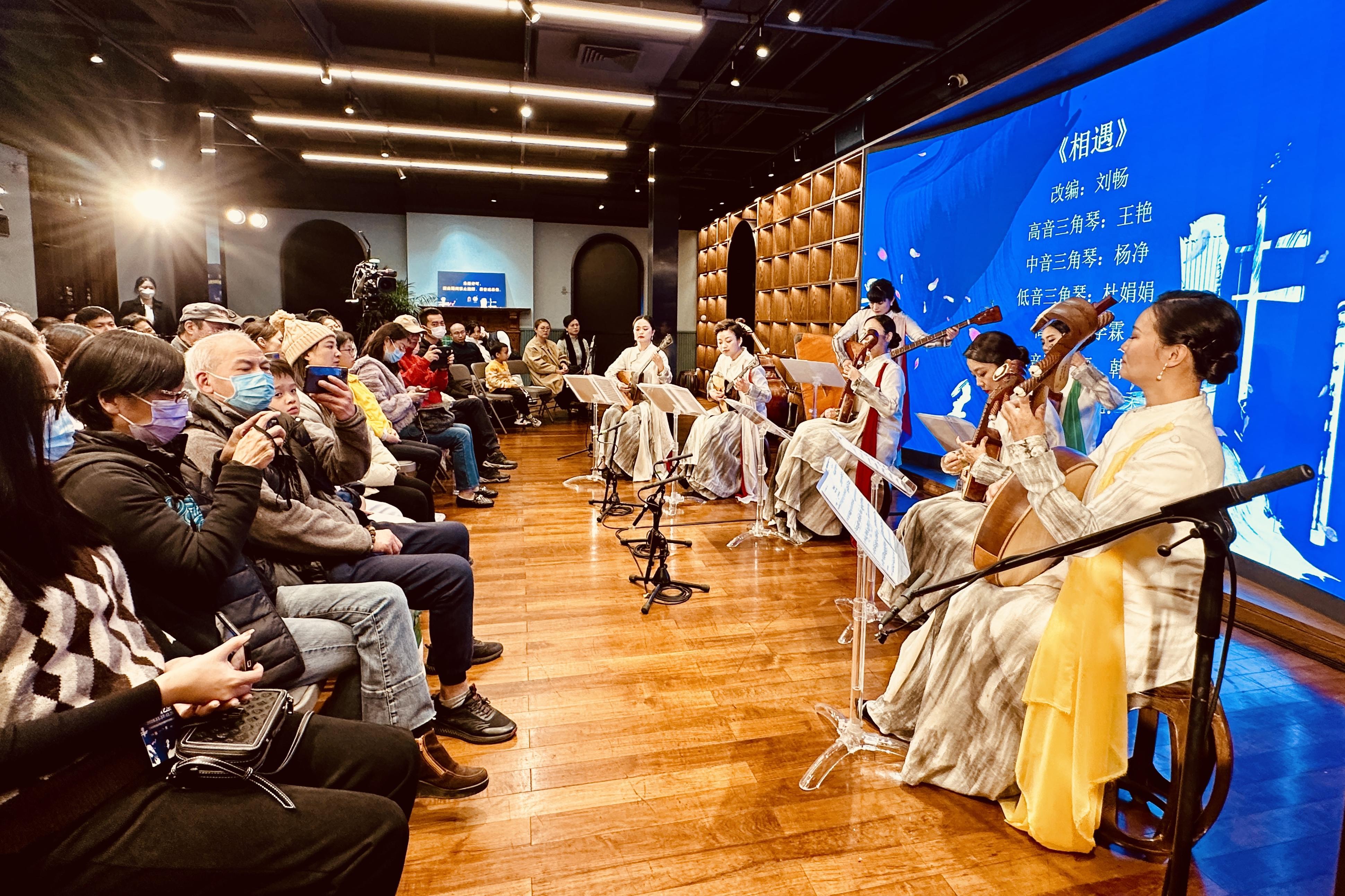 丝绸之路上最“洋气”的服装是什么?为丝绸之路而生的民族乐器又是什么?11月24日晚,2023思南赏艺会第三场《相遇品弦》特邀上海汉服版权中心项目总监、东华大学上海国际时尚科创中心资深研究员冯济慈,上海民族乐团阮声部首席刘波带领乐团“时尚品弦”组合,赏析丝绸之路上民族乐器与服饰文化的交融与发展。