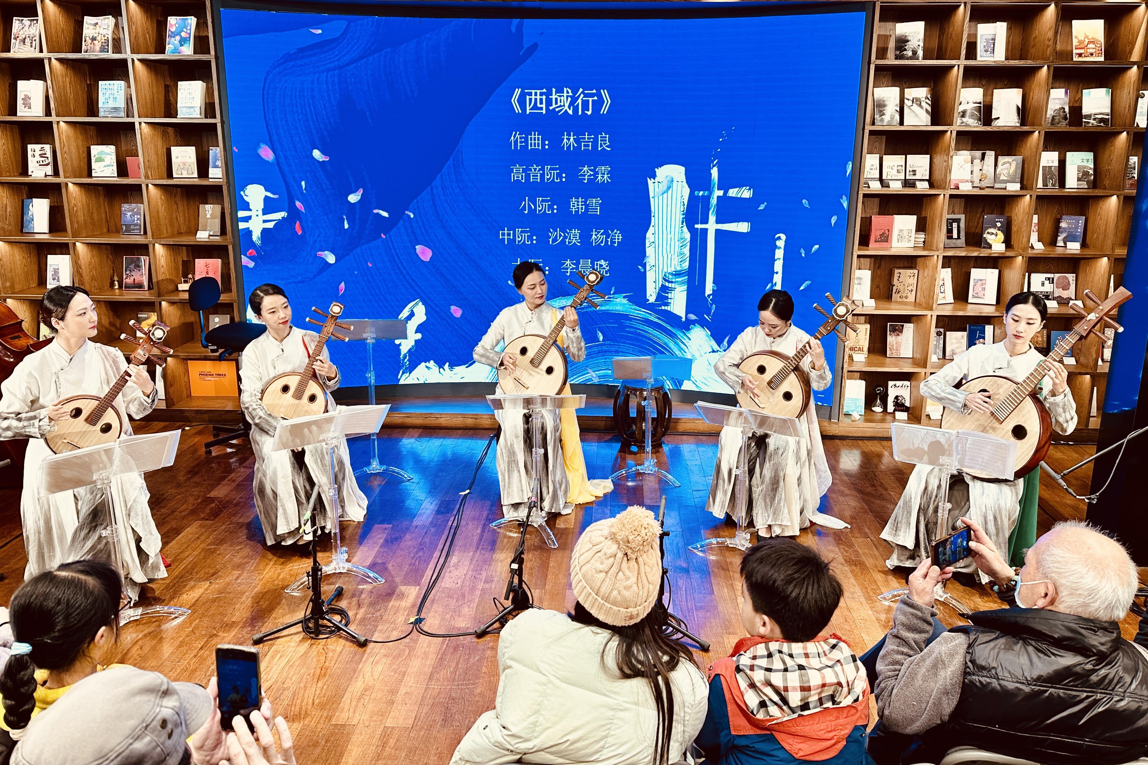 “阮一诞生,就踏上了丝绸之路。它和丝绸之路的不解之缘,也让许多音乐家为之创作。”刘波带领“时尚品弦”组合,带来了《西域行》《丝路驼铃》等充满西域特色的旋律,也带着观众感受浪漫、唯美的异域风情。