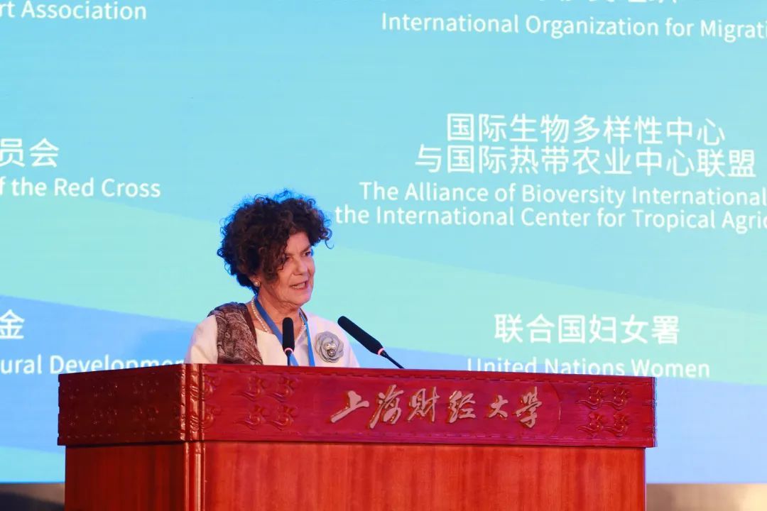 罗塞拉·塞拉维娅女士致辞,她表示此次活动是联合国系统、国际组织和中国政府与高校的重要合作,是加快推动《联合国2030年可持续发展议程》,践行多边主义的具体体现。她十分肯定中国对国际组织实习项目所做出的支持,中国高校向国际组织输送了大批具有使命感的优秀人才。国际组织工作经历有利于来自全世界各种背景的年轻人建立共识、提升能力、追求共同目标,为全球治理贡献力量。