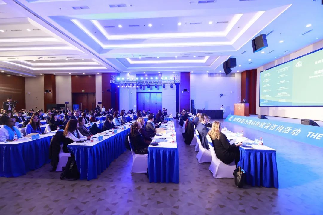 下午,国际组织以展台和市集(market place)形式开展宣讲咨询,与有志投身国际事务的中国高校青年学子进行现场互动交流、咨询答疑,并作专题报告,介绍国际组织机构职能以及申请实习岗位的方法和经验。活动吸引了2000余名学生参加,宣讲咨询活动现场火爆,专题报告座无虚席。