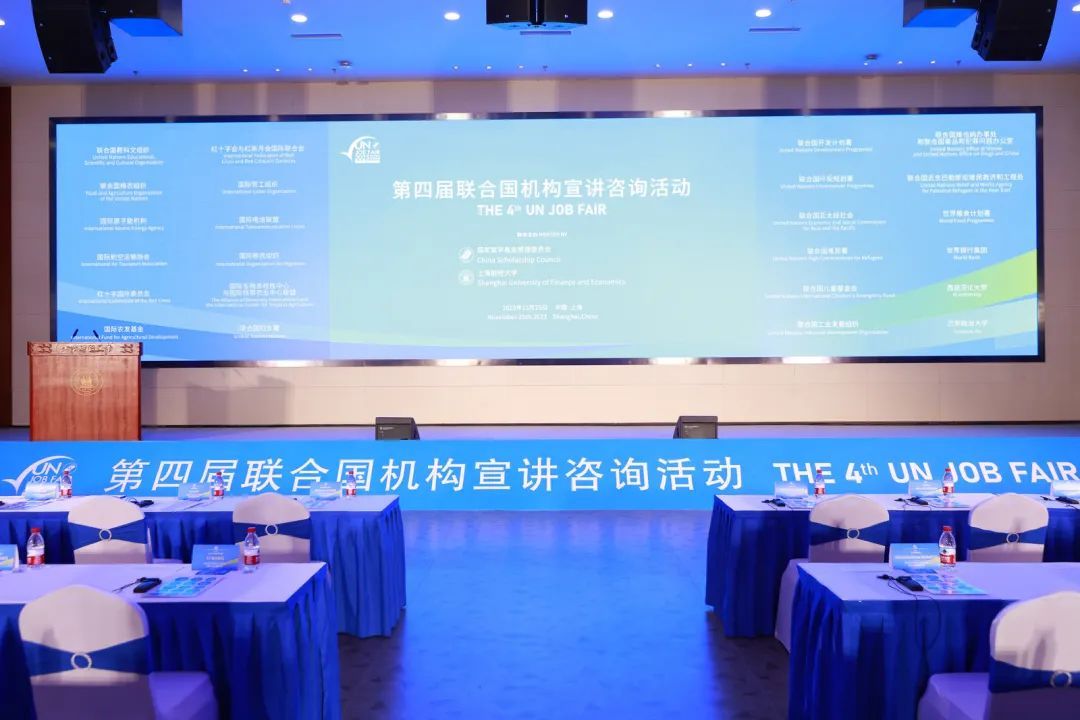 11月25日,由国家留学基金管理委员会(以下简称国家留学基金委)和上海财经大学联合举办的第四届联合国机构宣讲咨询活动(4 th UN Job Fair)在上海财经大学举办。