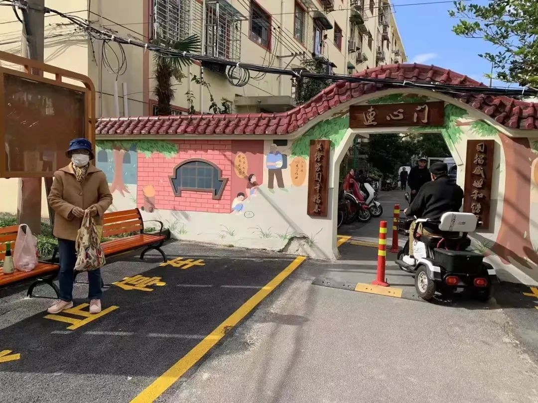蒋家桥小区和幸福村后村位置相邻,但在过去的一年里,两个小区并不互通。但蒋家桥小区门口有一座菜市场,幸福村后村入口靠近地铁站进口,居民们来往穿行两个小区的需求量很大。为此,欧阳路街道和蒋家桥居委通过“管治建”三步走,对两小区全面实施综合改造,不仅打造了互惠互通的拱门,方便居民通行,还在两个小区的通道处增设休闲座椅,方便老年居民休憩。居民们也一齐上阵,亲手绘制彩墙,扮靓自己的“美丽家园”,打造破圈共融的社区共享微空间。