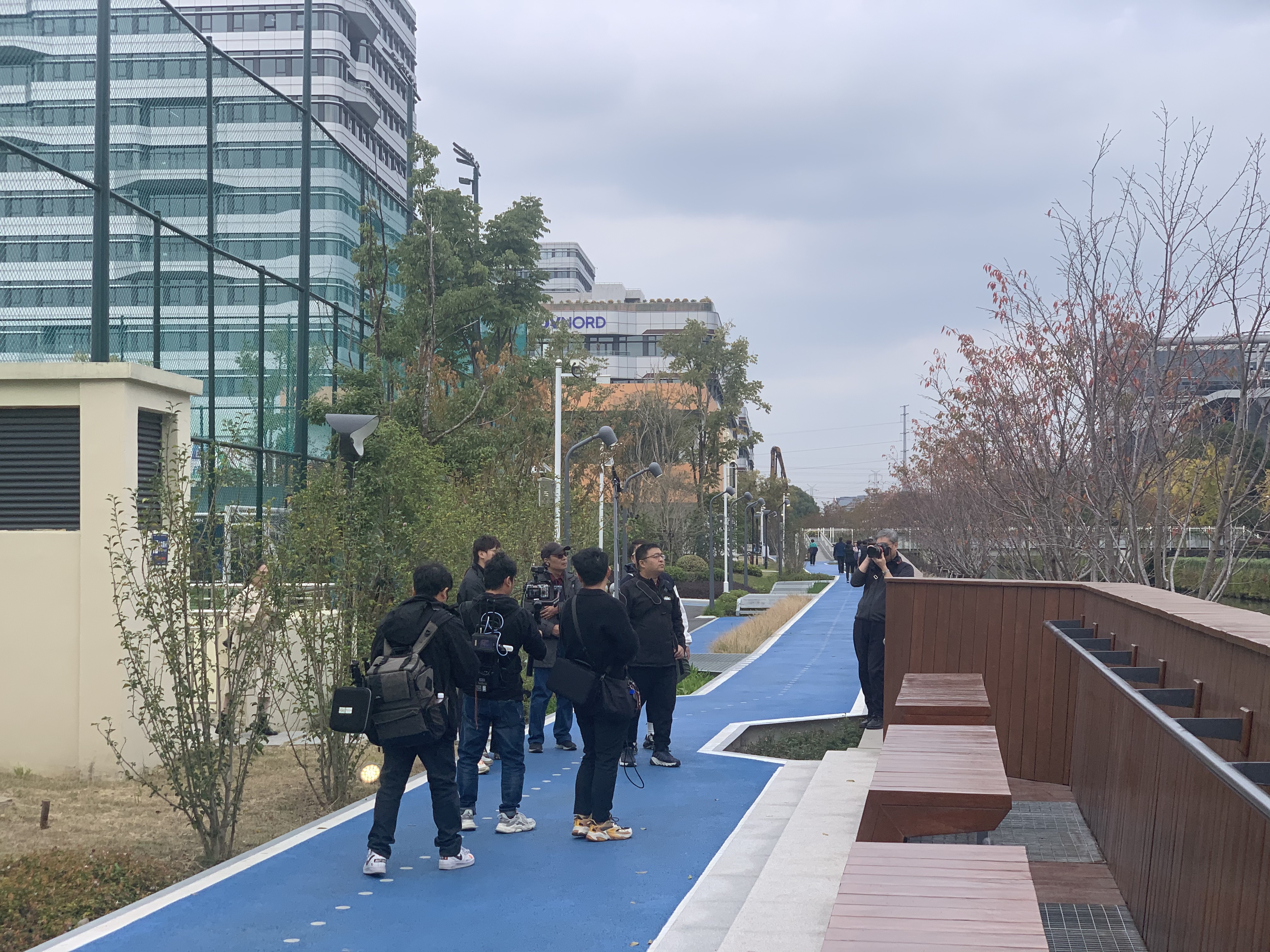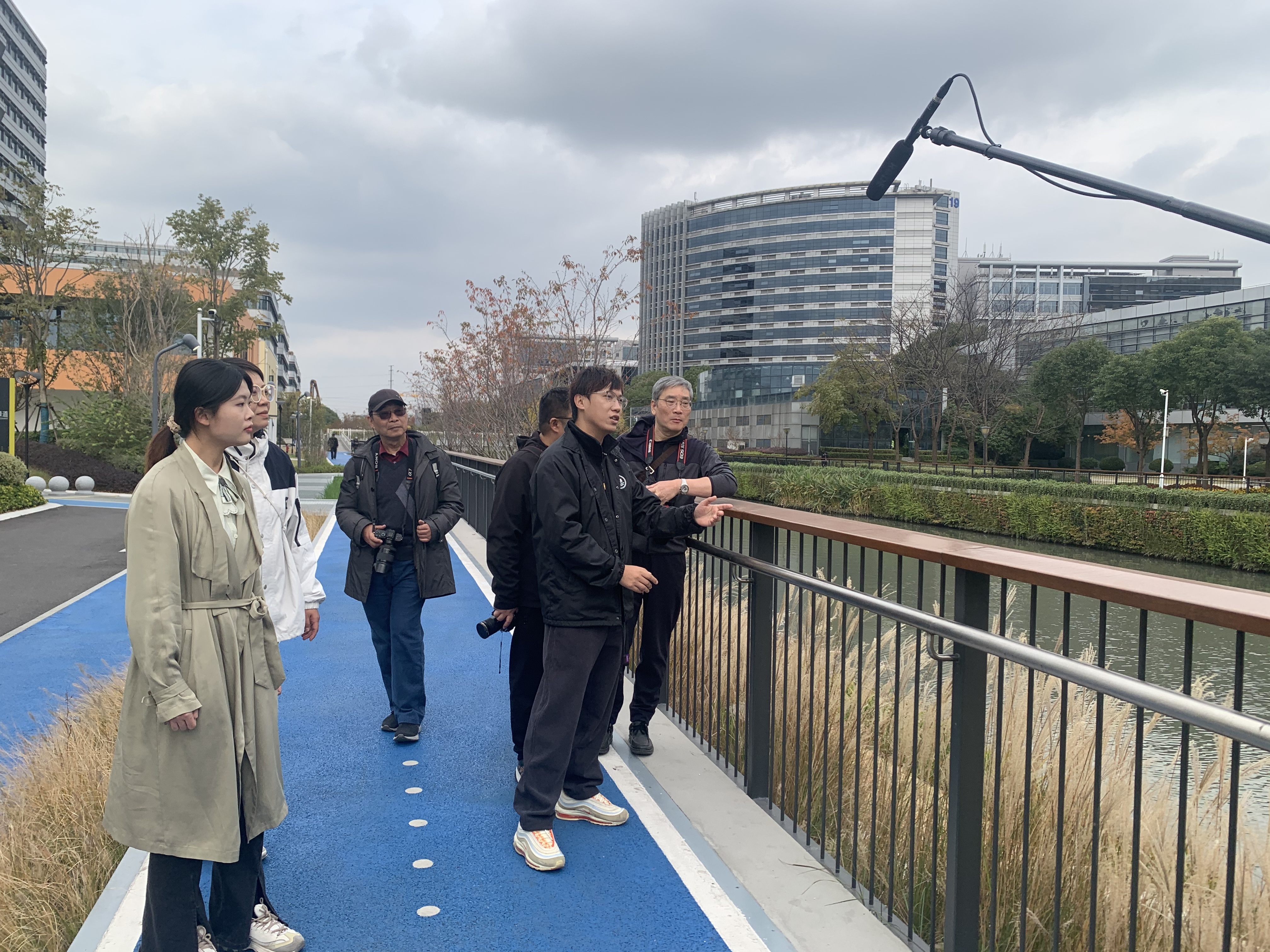 在直播过程中,风尚官与摄影协会的老师、爱好者,沿着彭越浦步道一边走,一边互动,交流拍照技巧及摄影知识。比如,走过足球场时,大家探讨了如何拍体育题材的照片;在彭越浦河畔,老师分享了拍摄此处河道景观的方法。