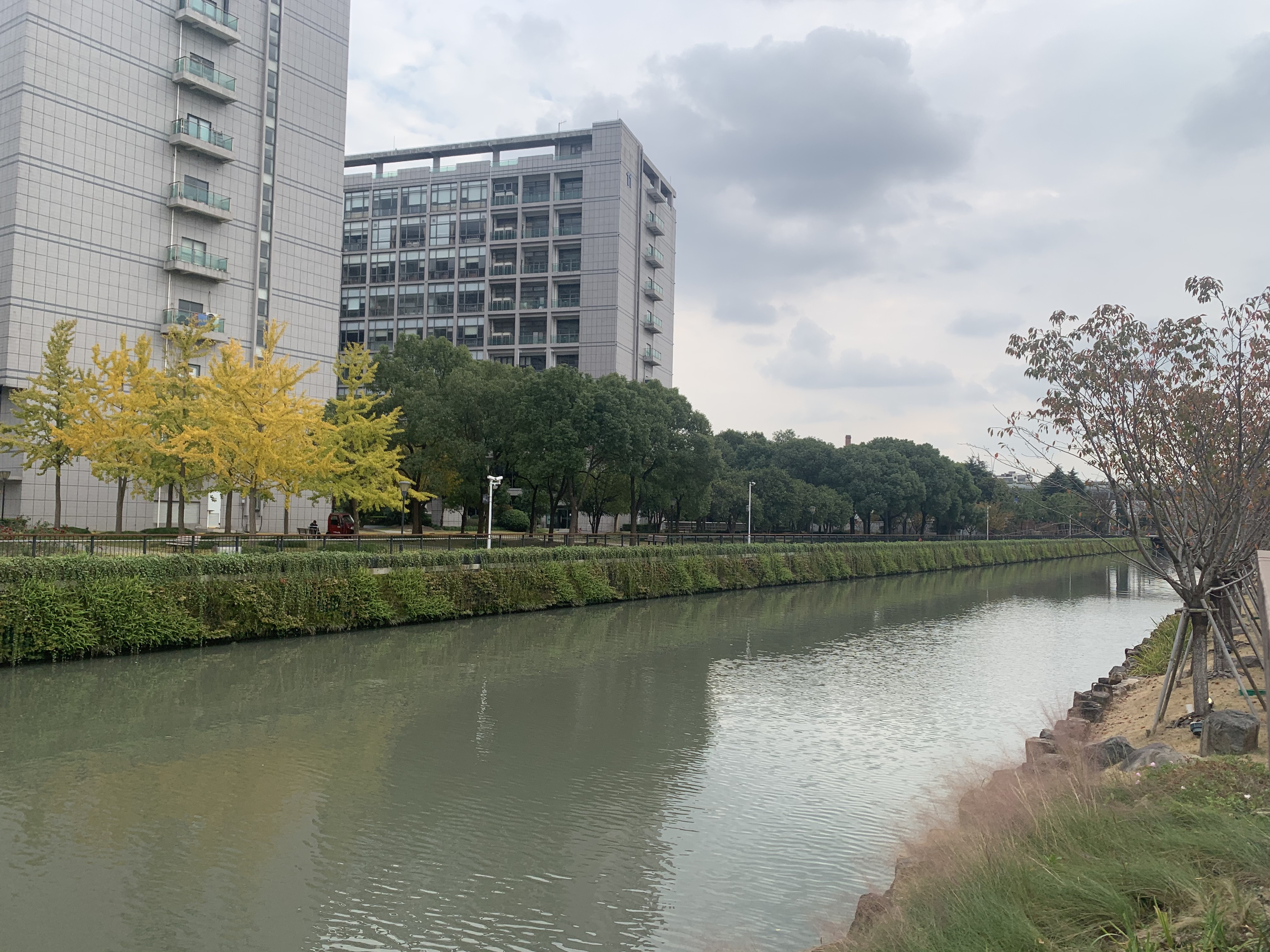 徐炜延:这条河道比较直,在画面中有非常直的线条时,可以尝试做对角线的构图,加深画面纵深的透视感。我们在平时拍照构图的时候,不要拘泥于局部,而是要尽可能地把线条的延伸感带出来。此外,彭越浦两岸非常漂亮,有如银杏树等色彩丰富的内容,在照片的色彩表现上,能够起到加分和点缀的作用。